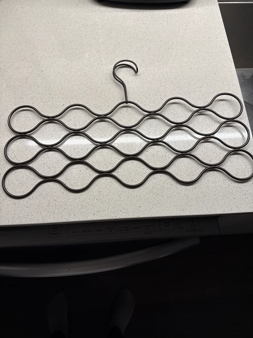 This hanger is awesome and brand new. It’s good for hanging various items such as scarves ties, silk shirts, socks anything that needs to be hung up you can do this all with just one hanger it acts like a hanger of 20 all in the hanger of just one keeps everything neat and orderly.