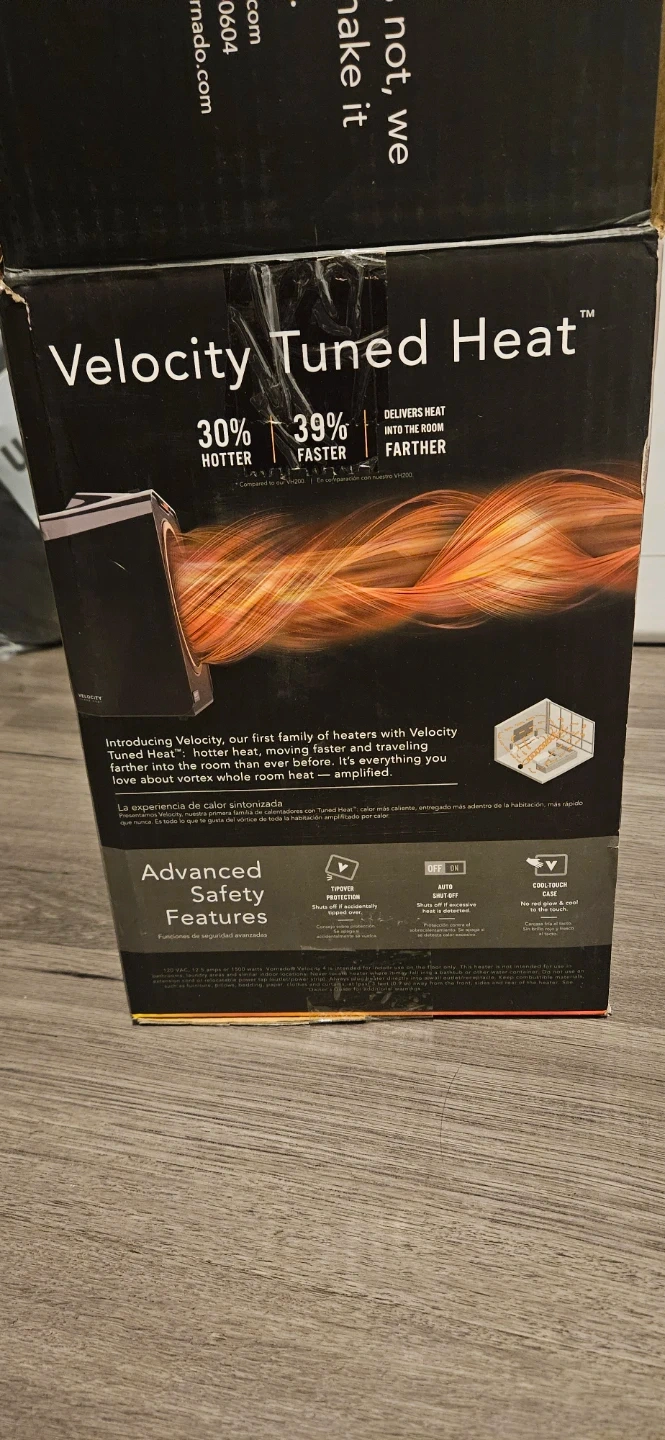 Selling a Vornado Velocity Tuned Heater. It features powerful vortex circulation and an adjustable thermostat for finely tuned comfort. It also has 3 heat settings. Brand new in box.