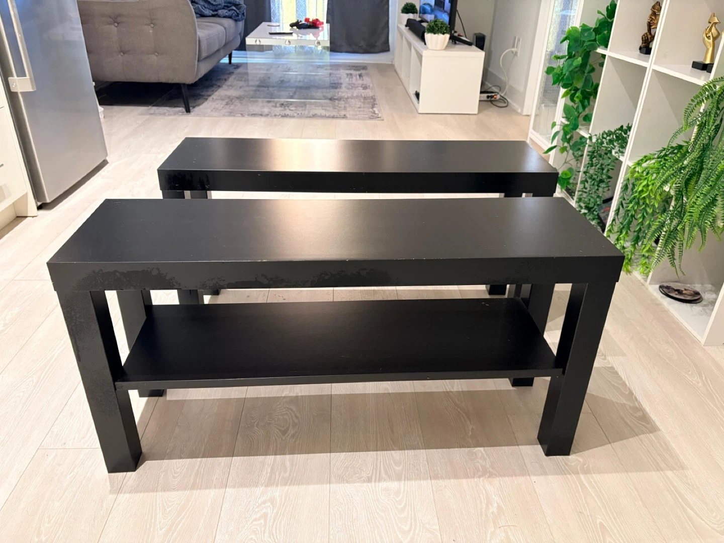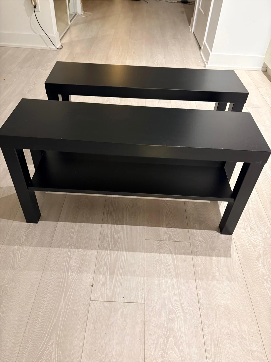 Selling two coffee tables, perfect for any living room setup! They're in great condition and ready to be picked up. These tables are a sleek black colour and have a shelf for extra storage or decor