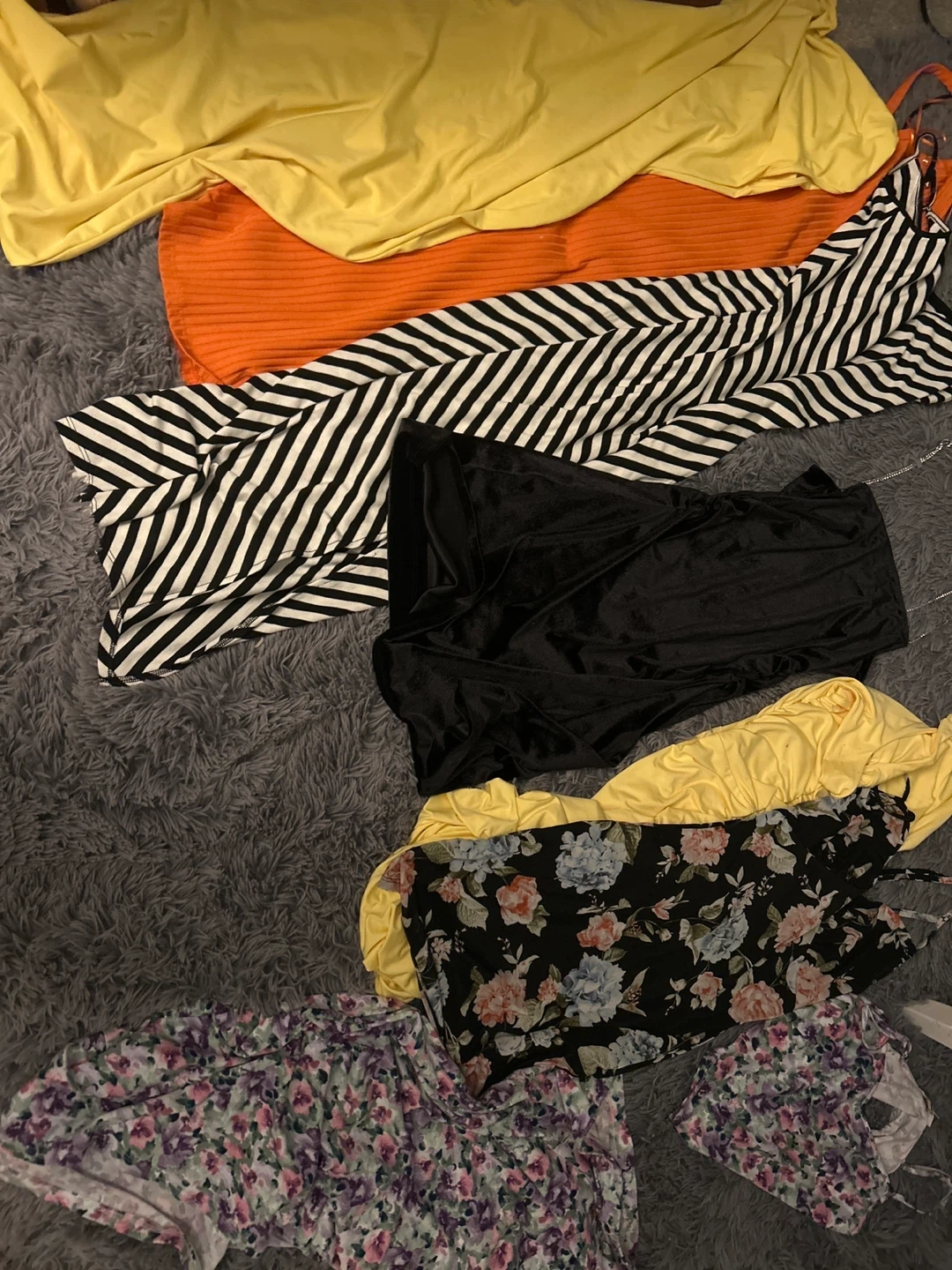 Selling a collection of women's dresses in various styles and colors! There's a mix of floral patterns, stripes, and solid colors. Perfect for adding some variety to your wardrobe!