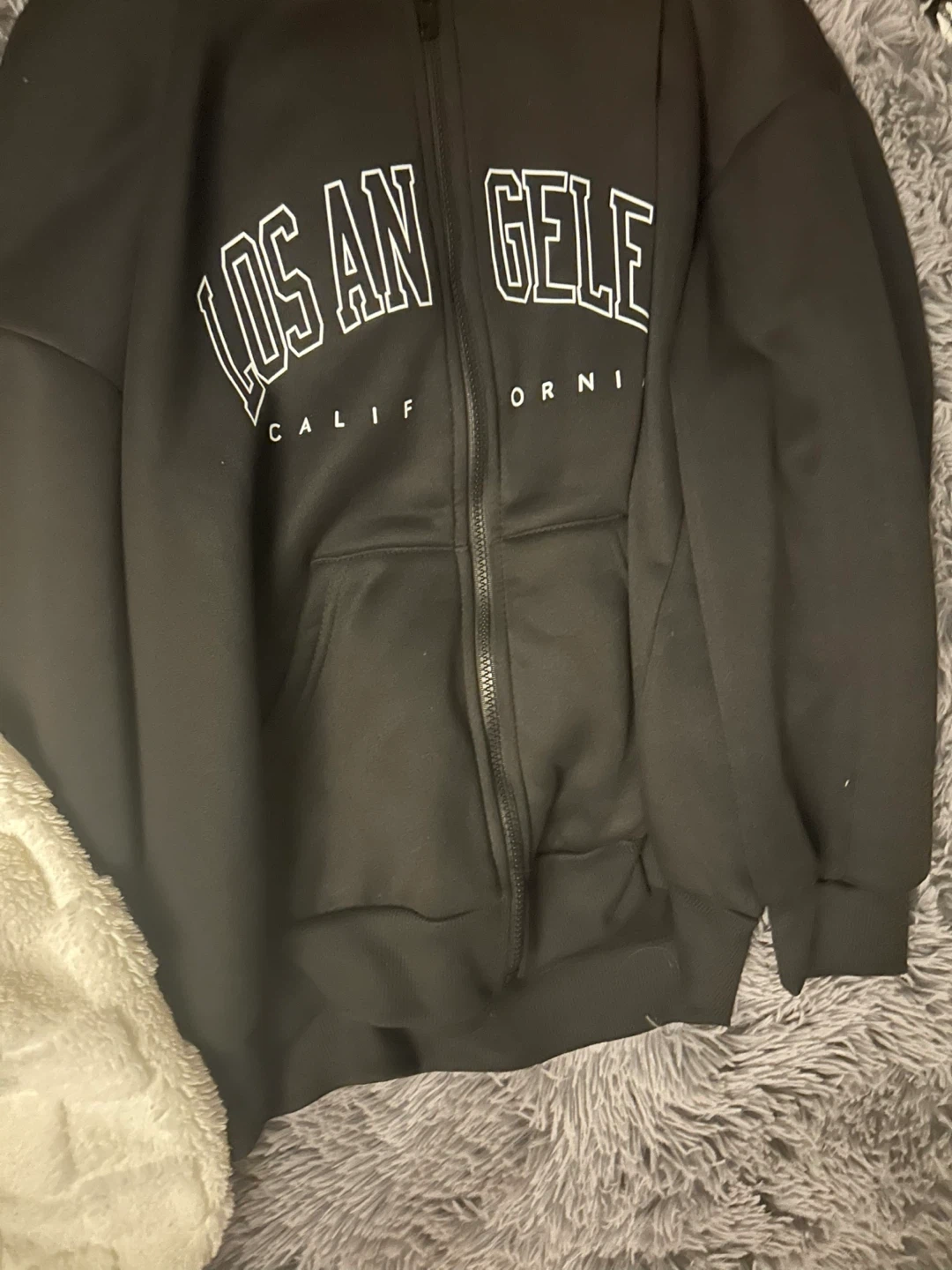 Buy & SellLos Angeles California Black Zip-Up HoodieLos Angeles California Black Zip-Up Hoodie$3Selling a black zip-up hoodie with "Los Angeles California" printed on the front. It's in great condition and ready for a new owner! #CleanoutConditionNewSizeLargeWHERE TO MEETCheck LocationView MapSELLERverifiedHiraLake Meadows600 reviews1 chats·0 favorites·16 viewsSEND CHAT TO SELLERHi Hira! I’m interested in your listing.Hi Hira! I’m interested in your listing.Get the Karrot app to chatSign In to chat