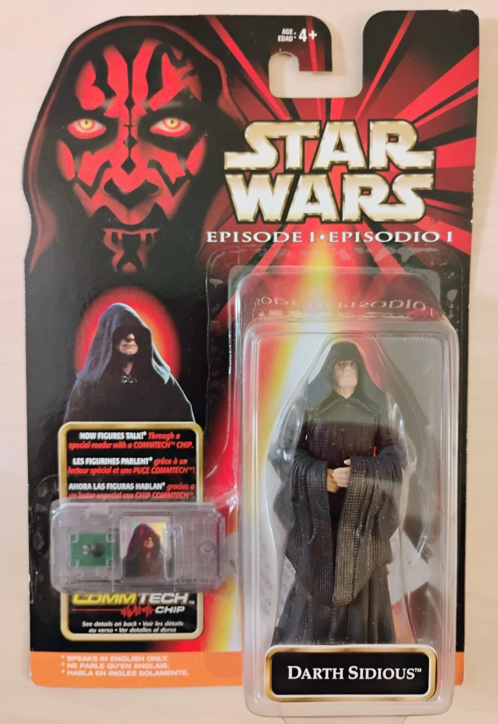Selling a Star Wars Episode I Darth Sidious action figure. It's still in its original packaging! The figure includes a COMMTECH chip that interacts with a reader to make the figure speak. A cool collectible for any Star Wars fan.
