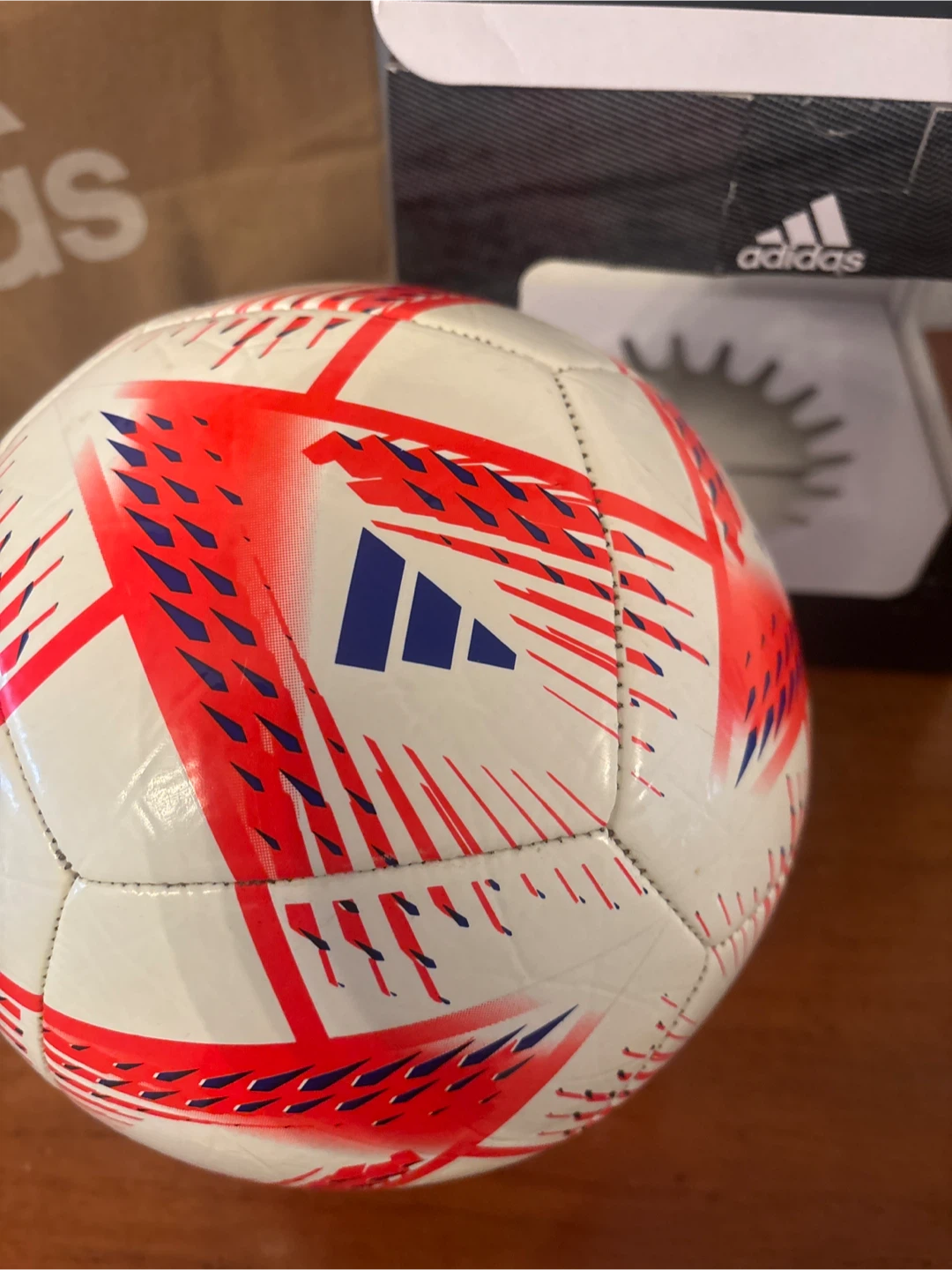 Selling an Adidas Al Rihla Club soccer ball, size 5! It comes with the original box and a shopping bag. It's an official size and weight ball, perfect for soccer enthusiasts