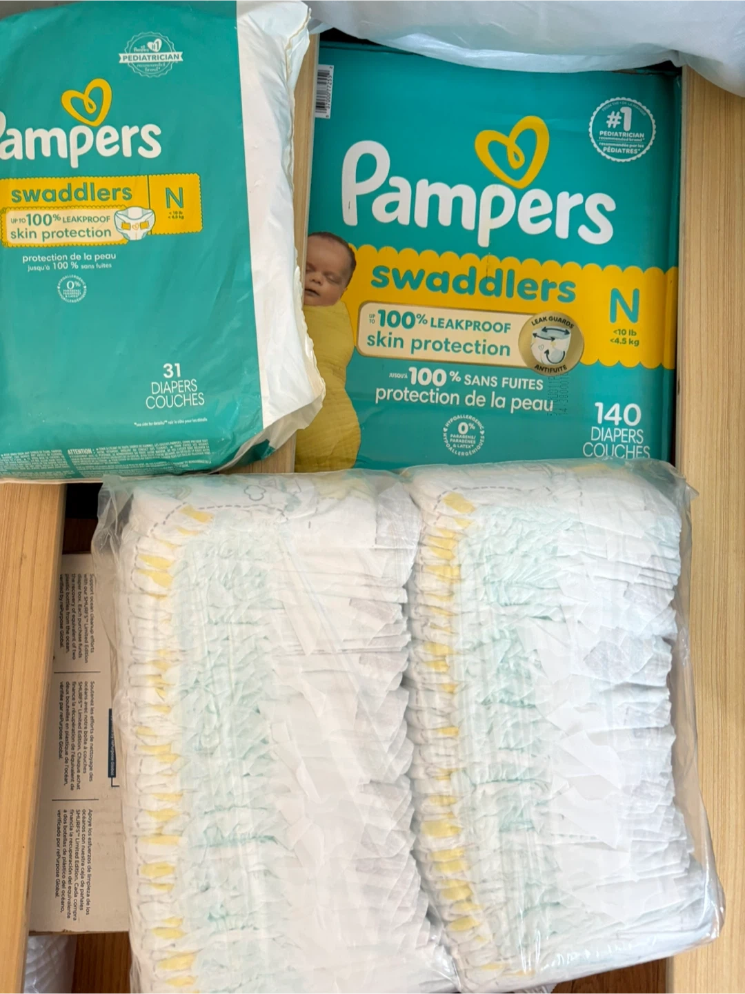 Selling Pampers Swaddlers diapers in size N ,size 1 ,size 2 and size 4 They offer 100% leakproof skin protection! Perfect for your little one , take for 40 each size.