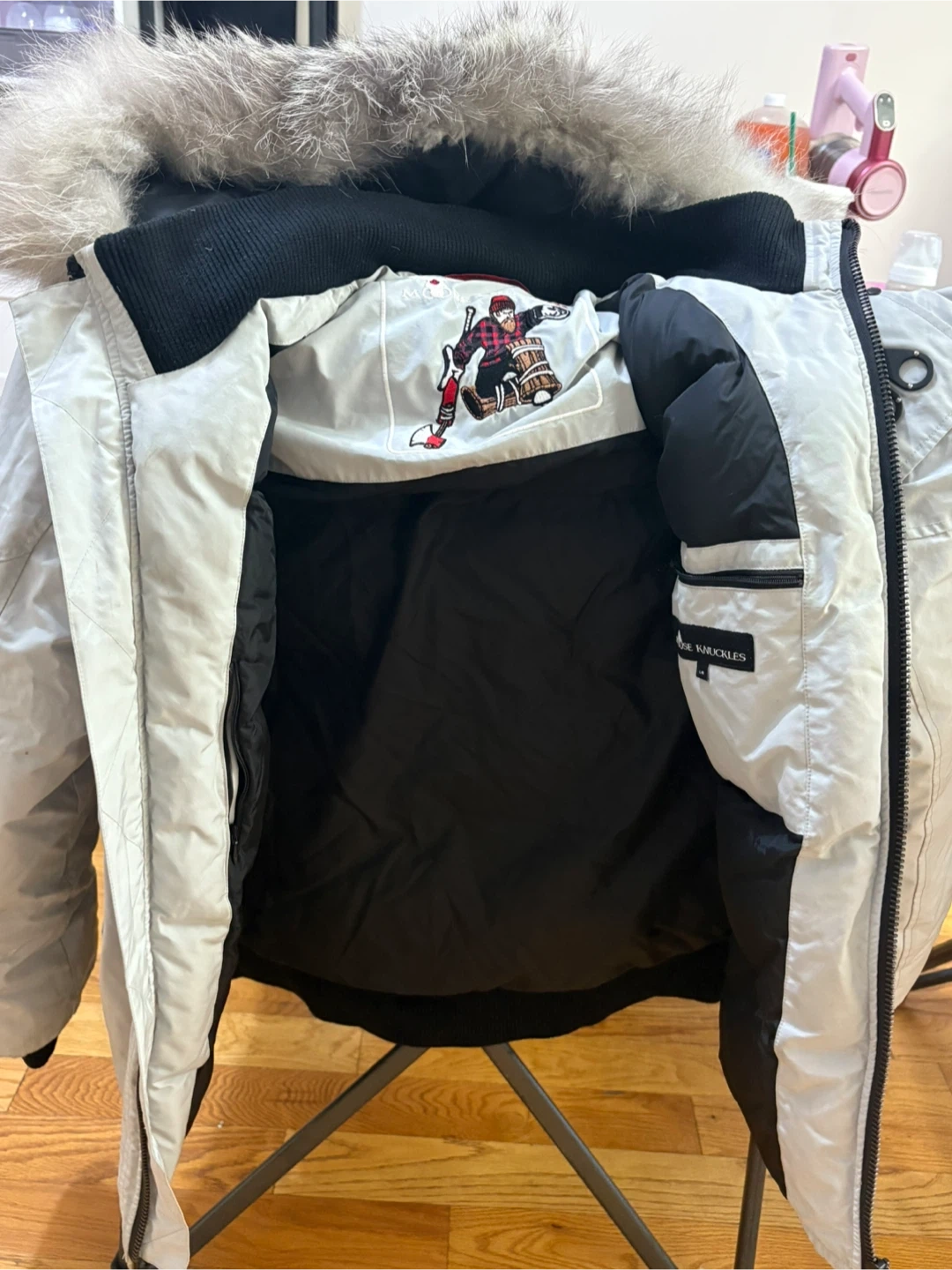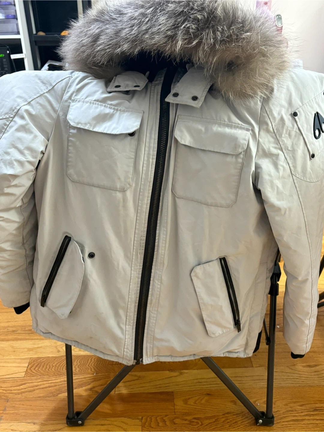Selling a Moose Knuckles parka in size L. It's in great condition and ready for the cold weather!