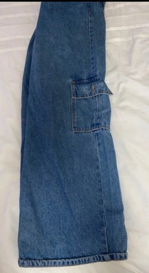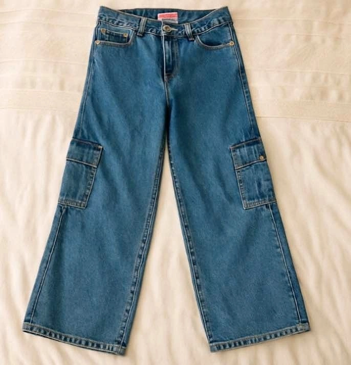 Vintage wide-leg carpenter jeans with flap cargo pockets on both legs. Classic Y2K streetwear vibe — super flattering wide leg, thick denim, and functional utility pockets. Fit like a Women’s Small. No holes, clean denim, great shape.