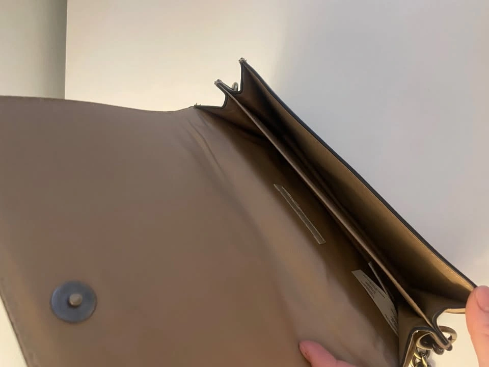 Inside: Clean beige lining, multiple compartments