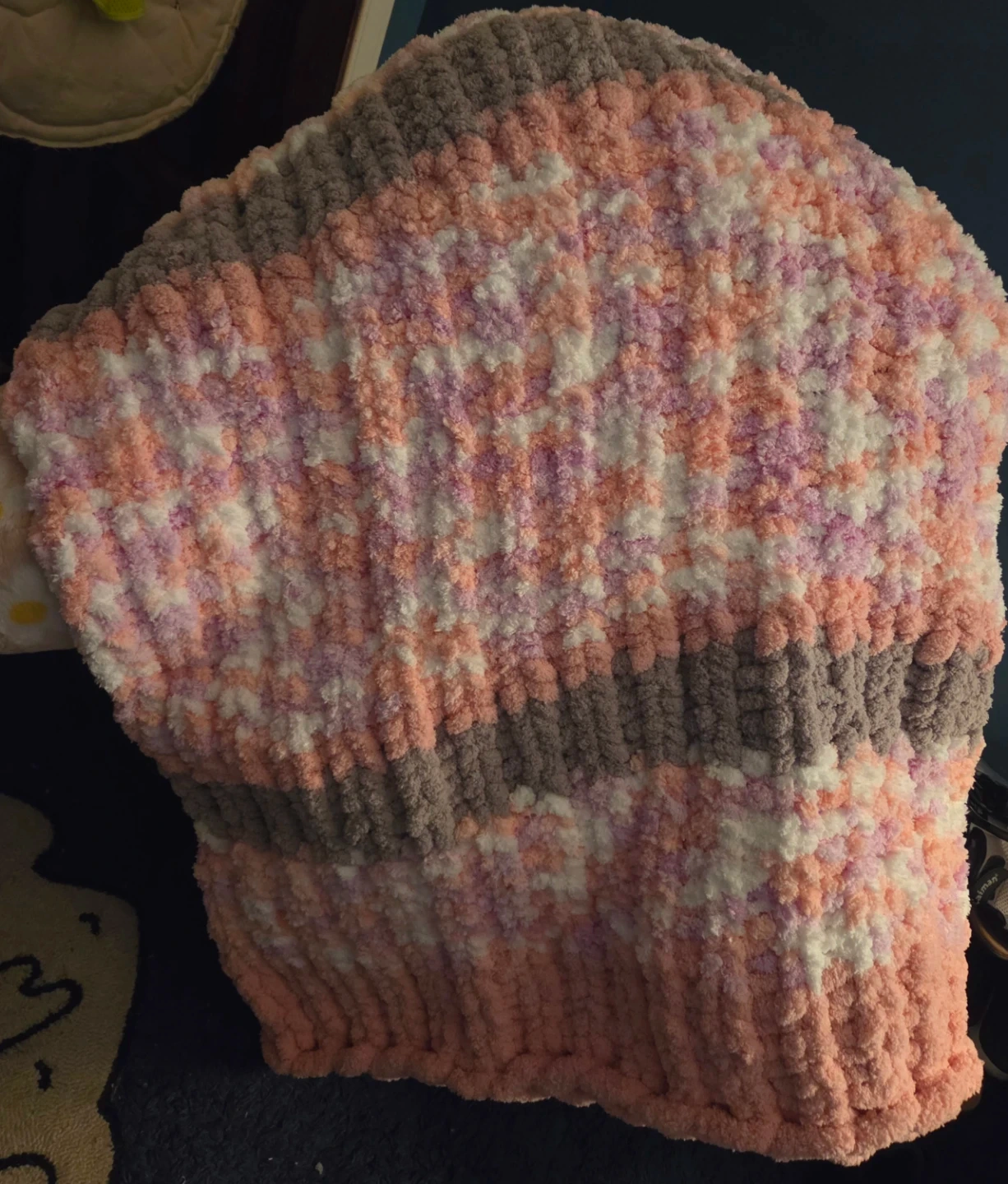Handmade Chunky Knit Blanket - Pink/Gray/White