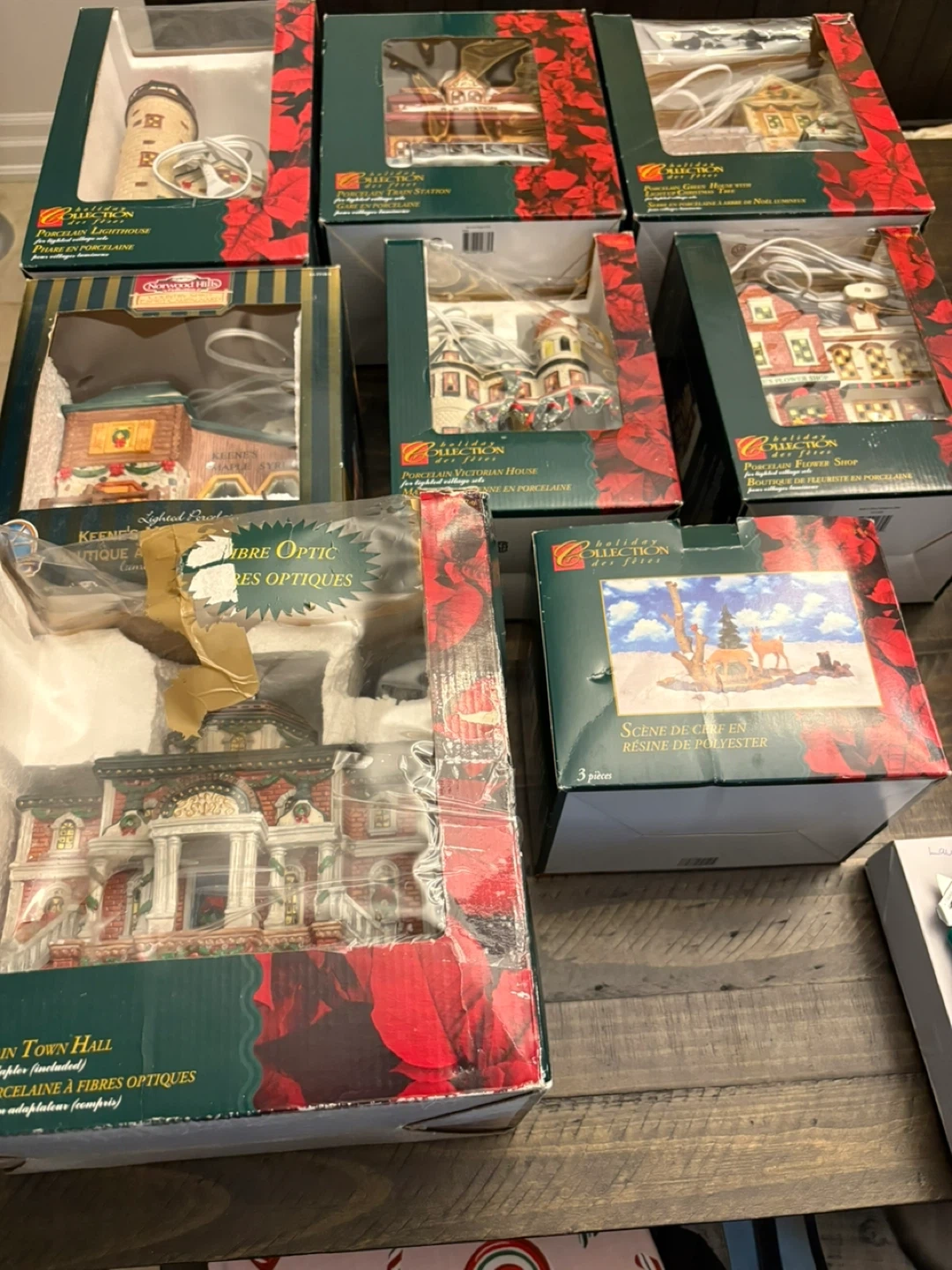 Eight great pieces at a fraction of the original cost. Beautiful Christmas decor. Some box damage but still an amazing deal.
