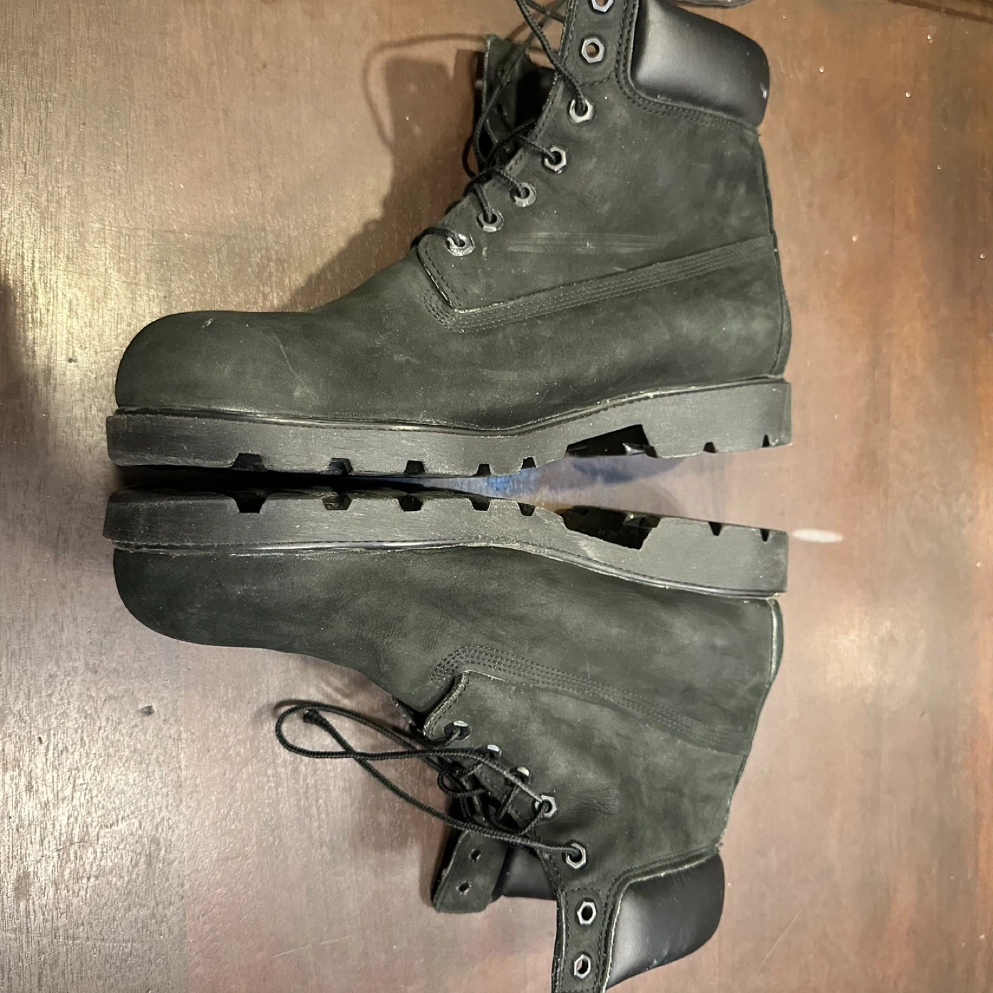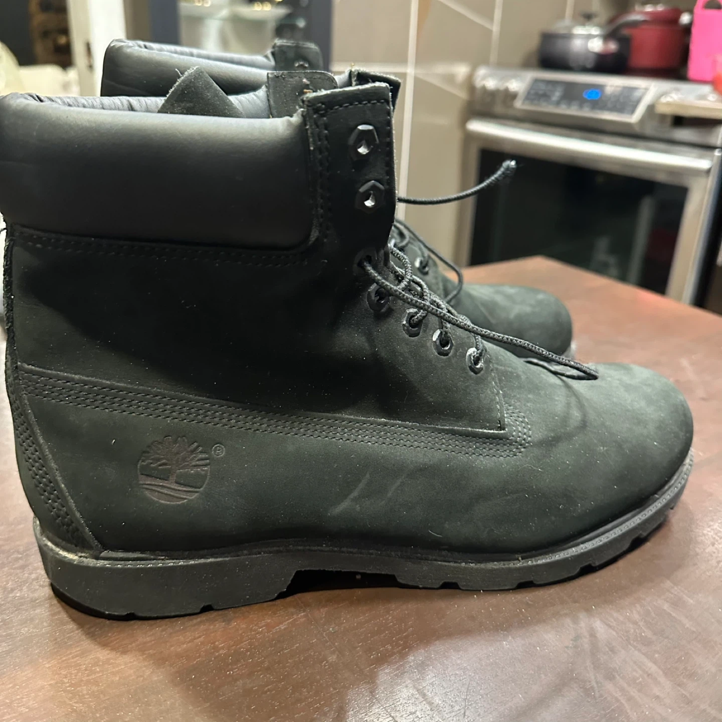 Selling a pair of Timberland boots in black. They're in good condition and ready for a new owner!