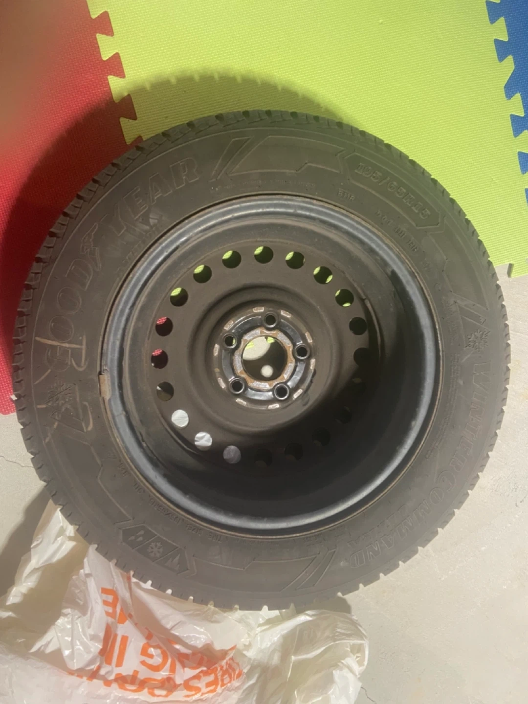 Selling a set of four Goodyear WinterCommand tire with rims, size 195/65R15. On the rim.It's in good condition and ready for the winter season! Only driven 20000 km.