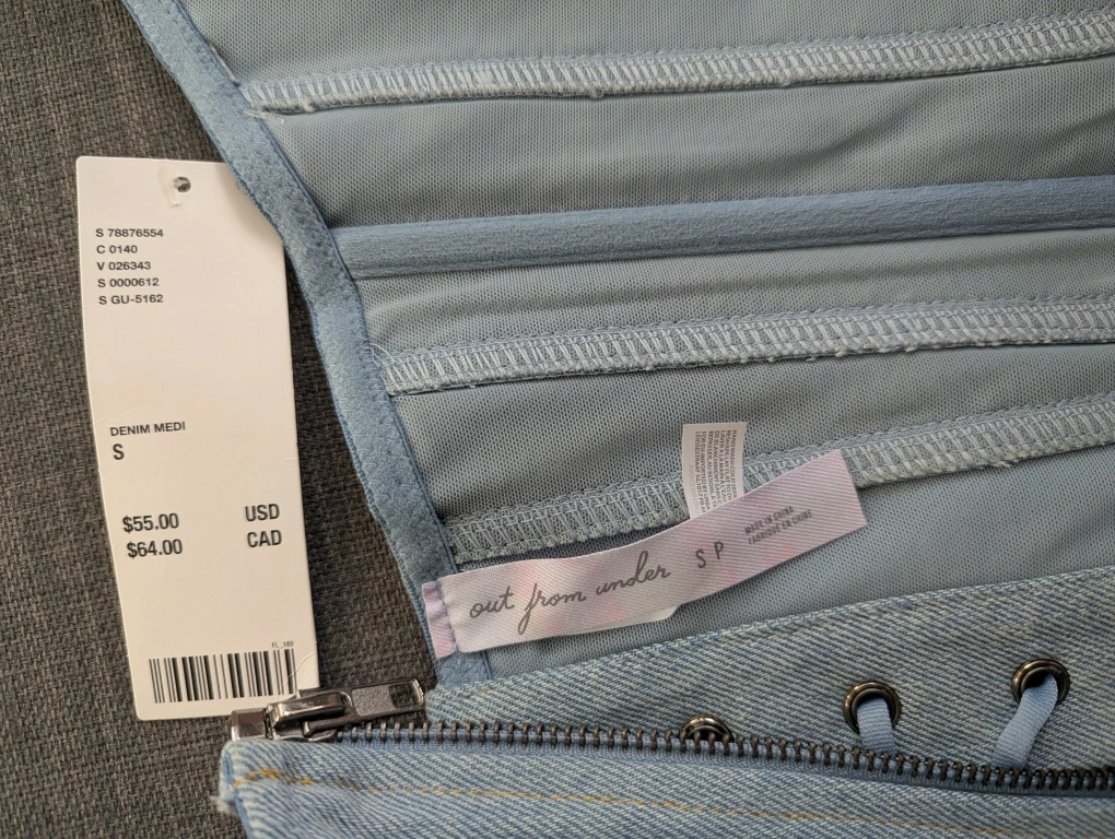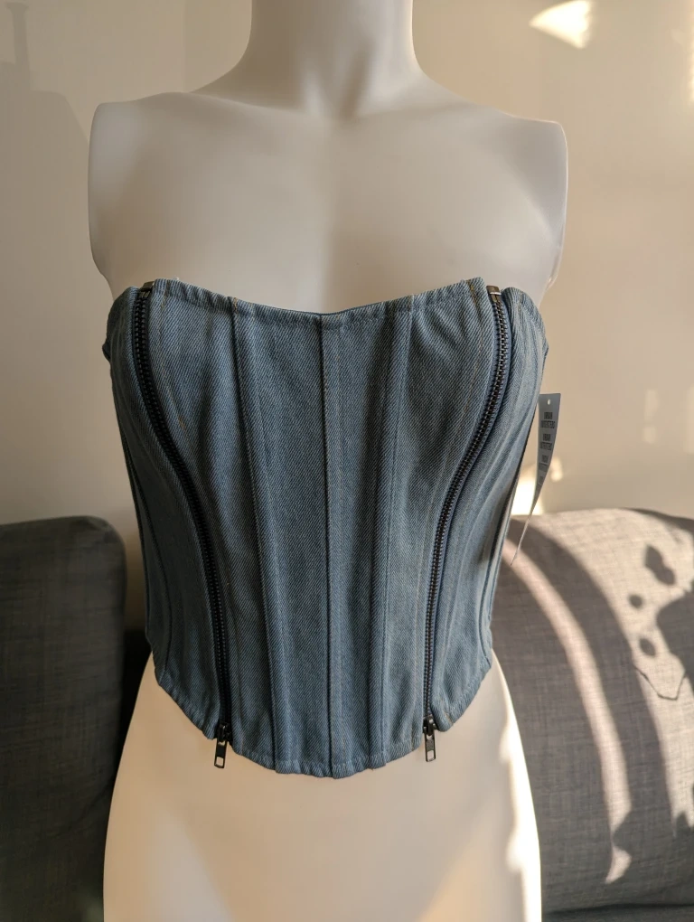 Selling a cute Out From Under denim corset! It's a size small and in great condition. The original tag is still attached, showing the price of $64 CAD