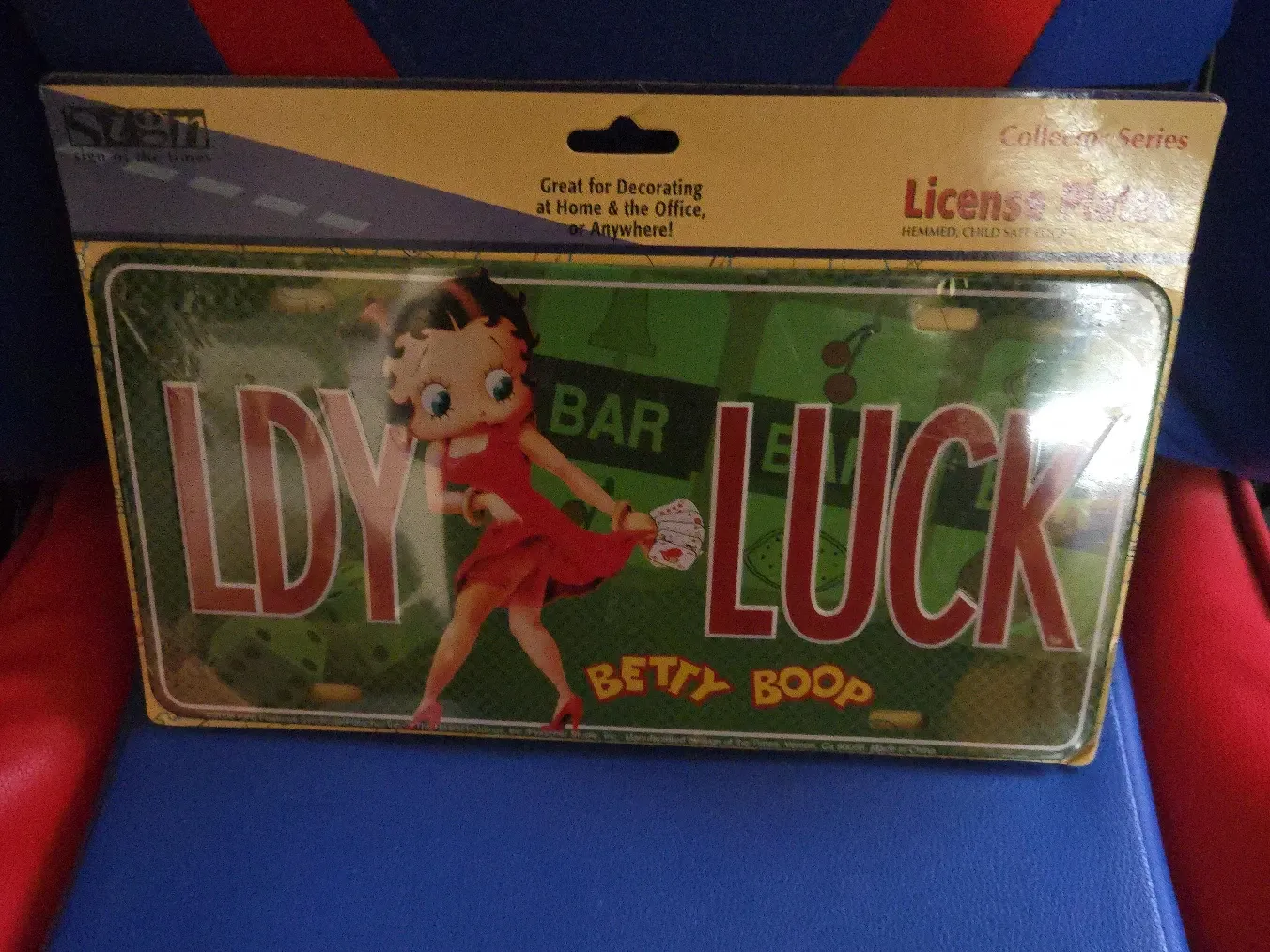 Collectible series Betty Boop license plate. Great for decorating at home or the office! Hemmed, child safe license plate.