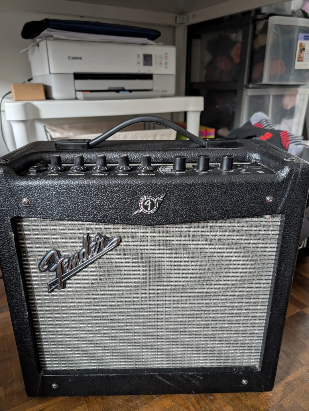 Seller a fender Mustang 1 v2 I'm deciding to get a positive grid spark mini 2 for its versatility and since I'm just a bedroom guitarist in an apartment I don't need all this power. It's a really cool and versatile amp, comes with a bunch of different tones you can pick digitally, if you're a beginner and still want a bunch of different sounds this could save you money on pedals
