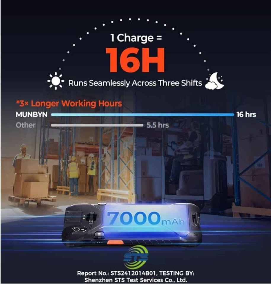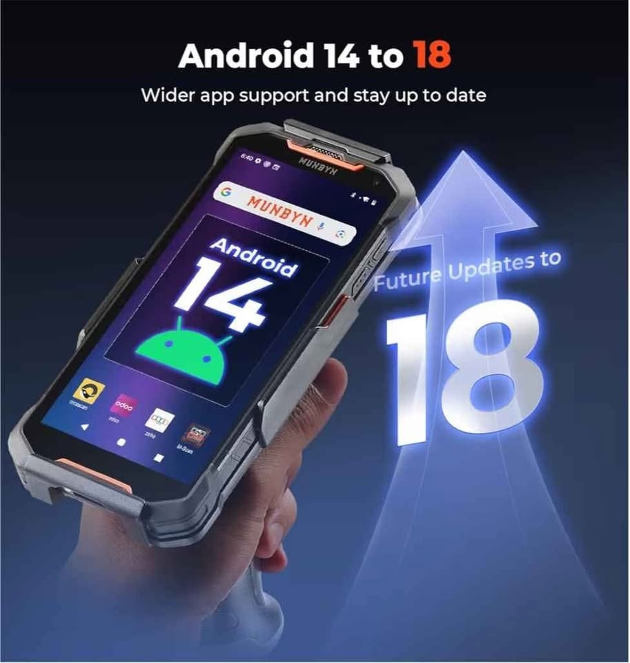 Upgraded System: Currently running Android 14 with new 200% font scaling, it supports gradual upgrades to Android 18, allows unrestricted App Store installations like an Android phone, flashes notifications for visibility in noisy warehouses, and better accommodates users who require larger text for improved readability