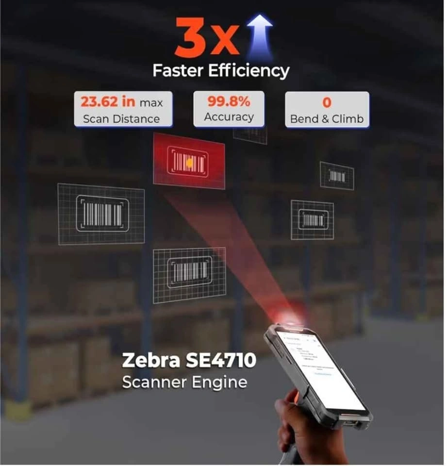 Precision Scanner: With the Zebra SE4710 engine, this device ensures over 99.8% decoding accuracy, scans barcodes up to 24 inches (60 cm) away, enhances safety by eliminating the need for ladders, and boosts efficiency with rapid response; for longer range needs, please contact us for more options