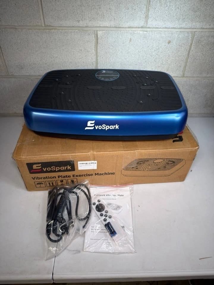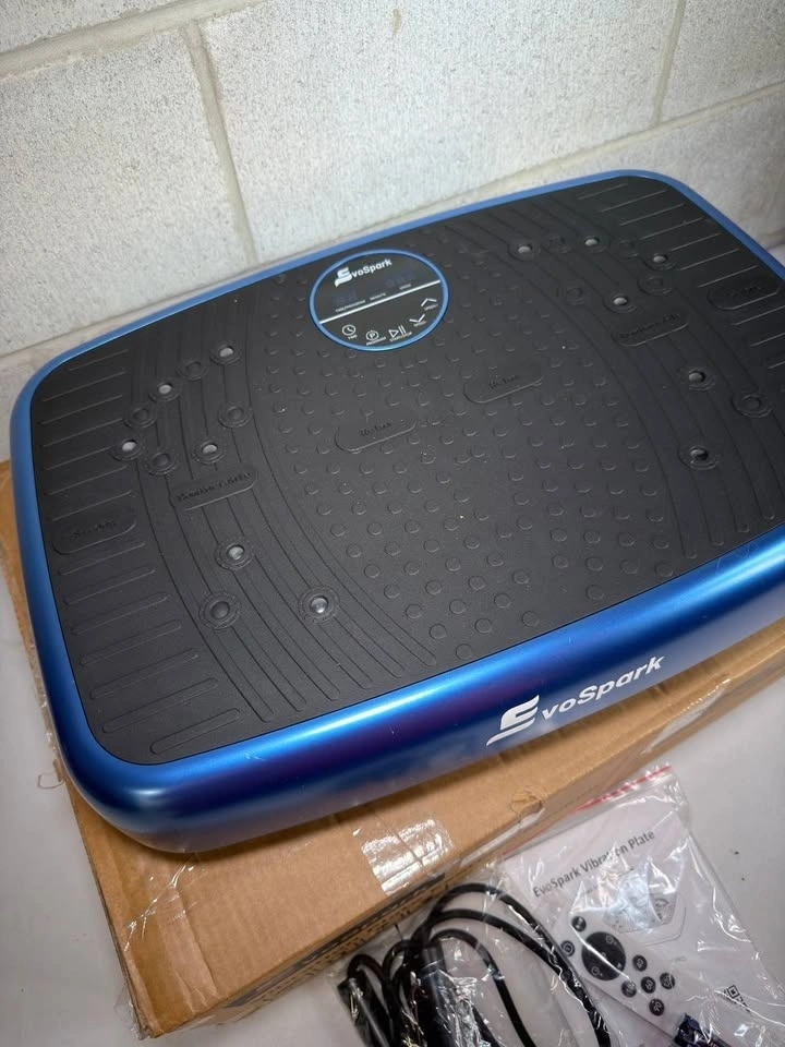 EvoSpark Vibration Plate β Blue 51Γ35Γ13 cm exercise machine with dual motors delivering over 1,000,000 vibrations. Provides full-body workouts, muscle strengthening, and circulation improvement. Features adjustable speeds, multiple exercise modes, acupressure foot surface, resistance band compatibility, and quiet, stable operation for home use.