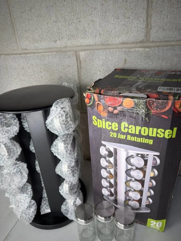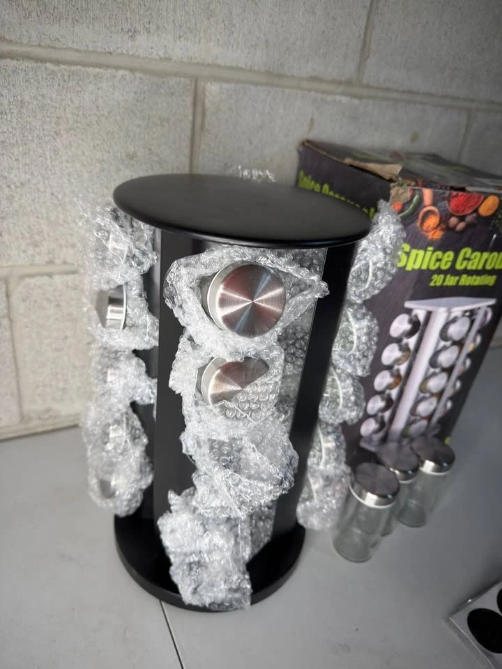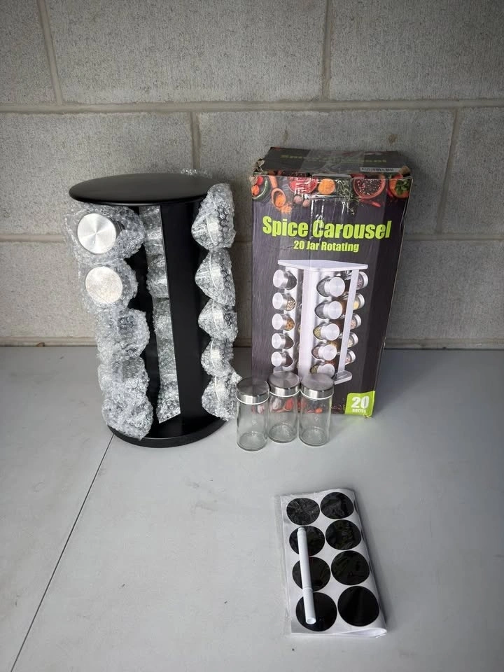 A space-saving 16-tier rotating spice rack designed to keep seasonings organized and easy to reach. The 360° rotating stainless steel tower comes with 20 empty food-grade glass jars, built-in sieve lids, and 32 reusable labels for quick identification. Its sturdy, countertop- or cabinet-friendly design keeps spices neatly arranged and accessible—an ideal upgrade for tidy kitchens or a thoughtful gift.