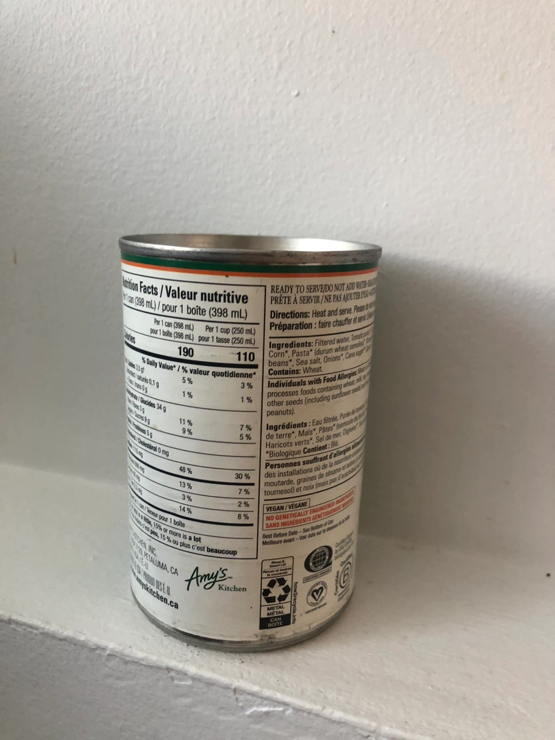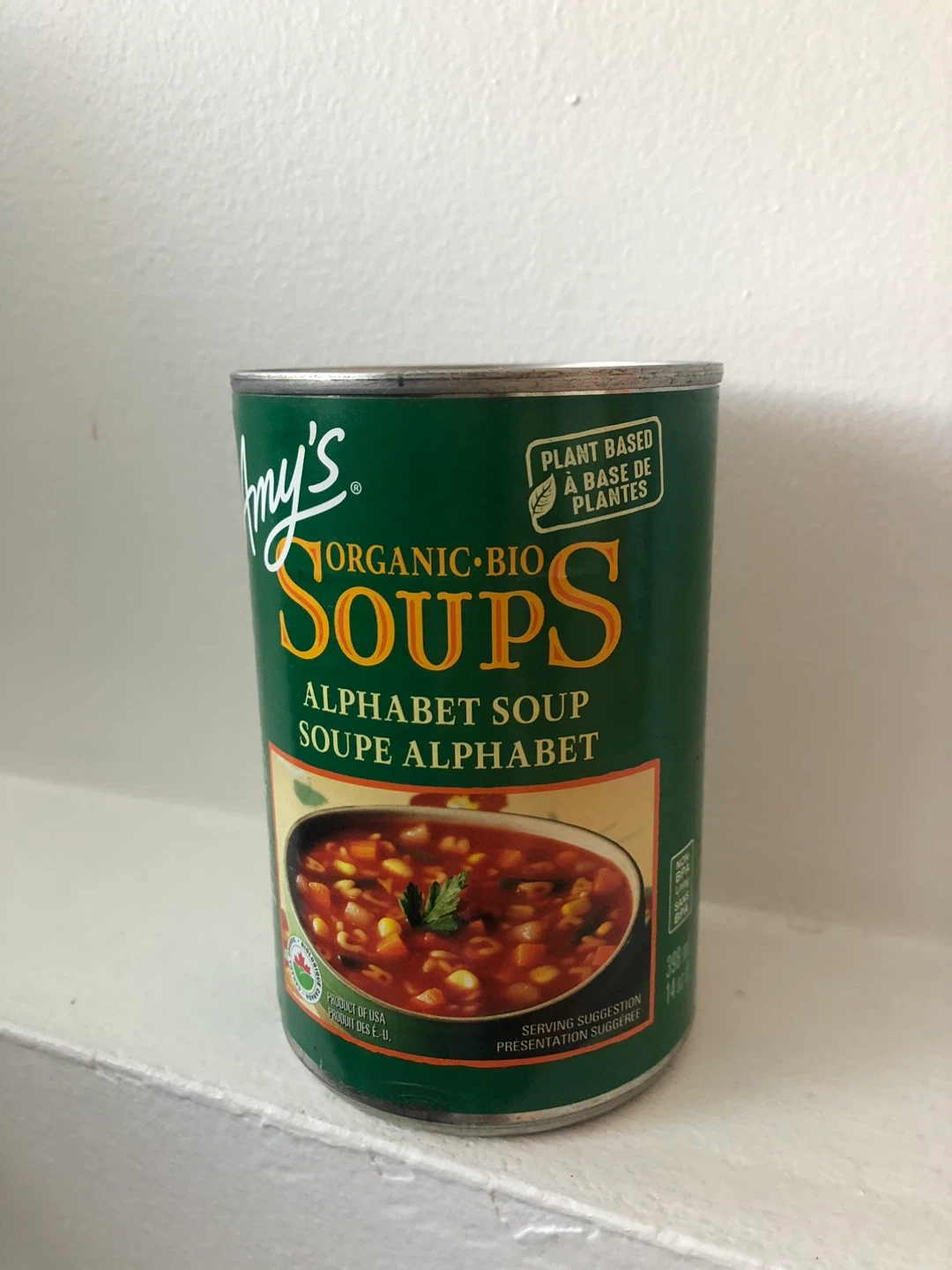 Selling a can of Amy's Organic Alphabet Soup! It's plant-based and ready to serve. The best before date is 2027 April.