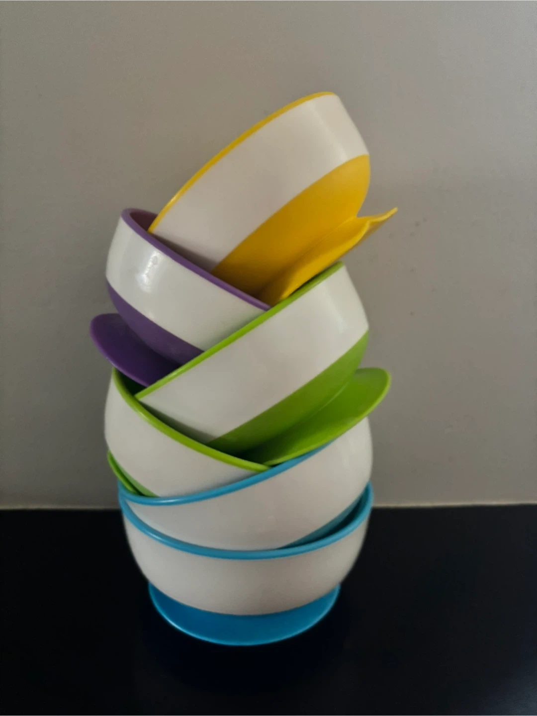 Selling set of six (6) Munchkin suction bowls! These are perfect for little ones learning to feed themselves. The set includes bowls in various colours like yellow, purple, green, and blue. They're in good condition and ready for a new family.