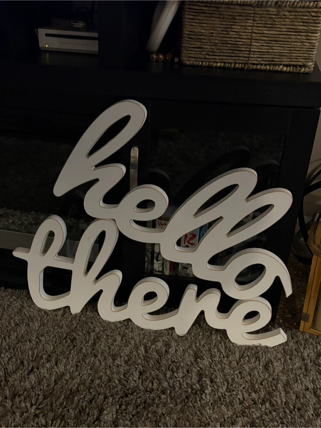 'Hello There' thick wooden sign! It's in great condition and would look lovely in any room. Perfect for adding a touch of warmth to your home decor.