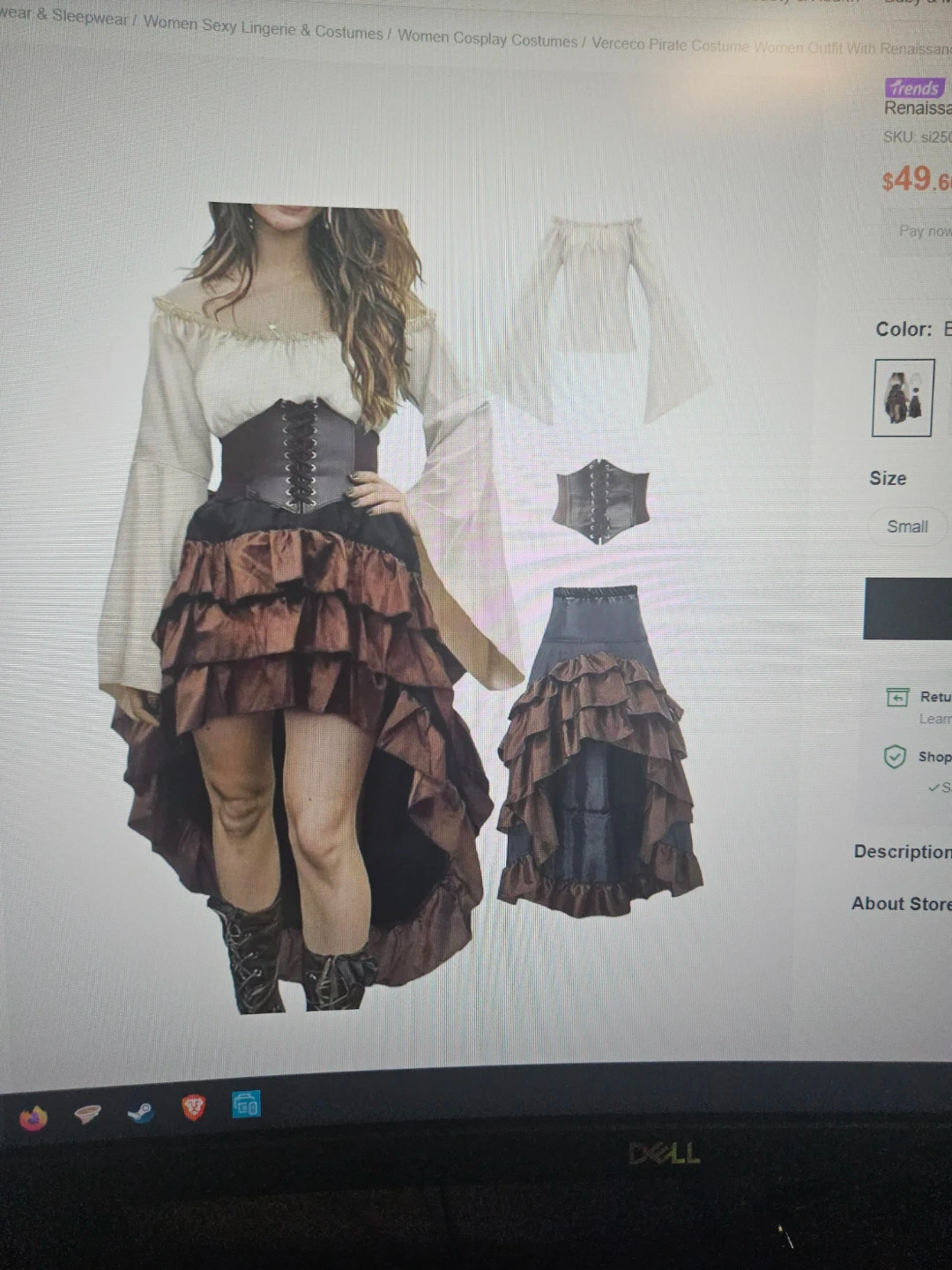 Selling a women's pirate costume from Verceco. It's a size small and features a Renaissance-style outfit. The original price was $49.60