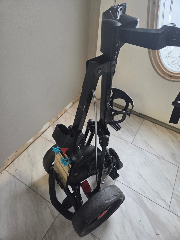 Selling a CaddyLite 11.5 V2 golf cart. It's in used condition, but still works great on the course! It features a convenient cup holder and a mesh basket for your essentials.