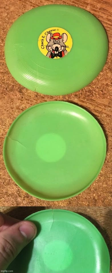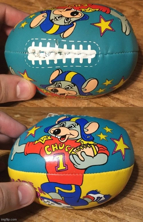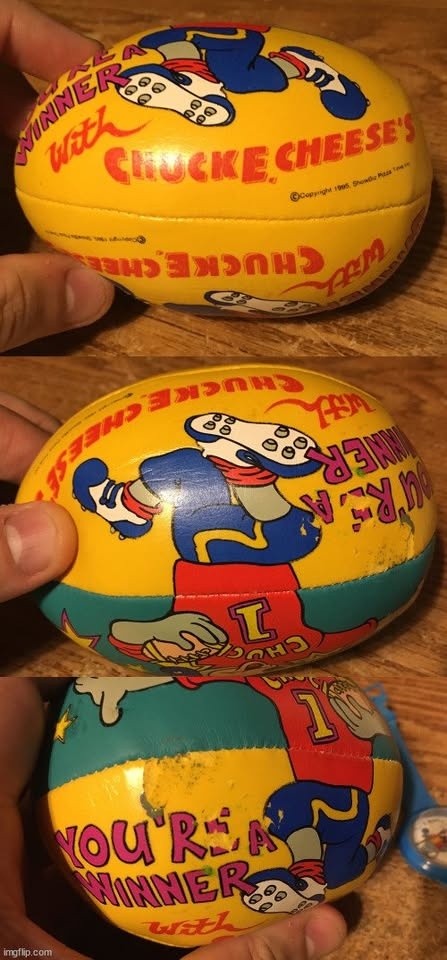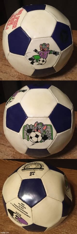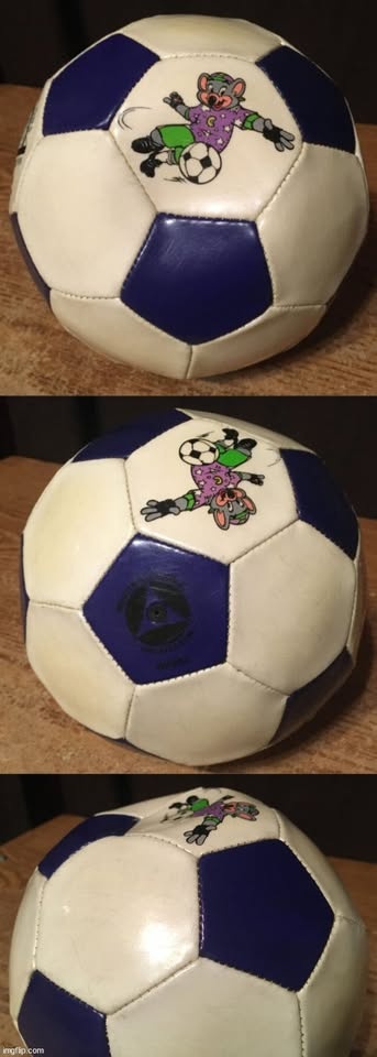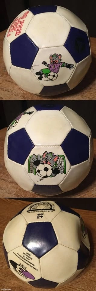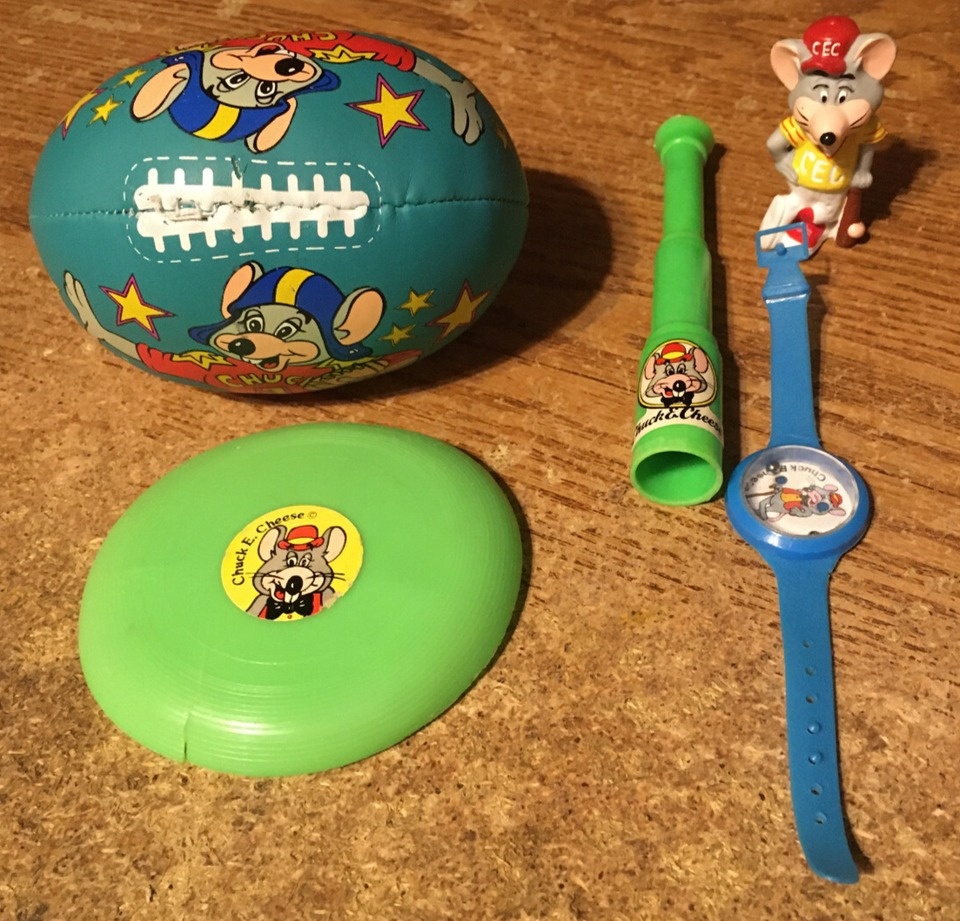 CHUCK E. CHEESE SHOWBIZ PIZZA 1985 FOOTBALL FRISBEE 1981 WATCH BALL IN THE HOLE PUZZLE 1986 SHOWBIZ PIZZA CHUCK E CHEESE BASEBALL FIGURE GREEN TELESCOPE MINI SOCCER BALL
