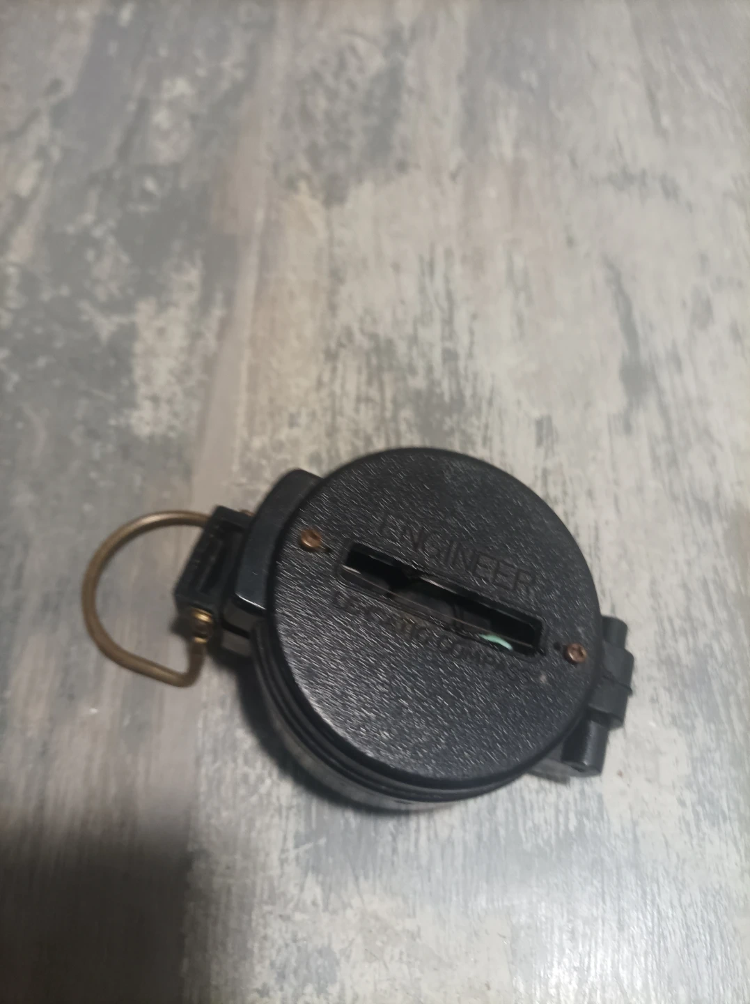 Selling a used lensatic compass, marked 'Engineer'. It appears to be in good working condition. Great for hiking or camping!