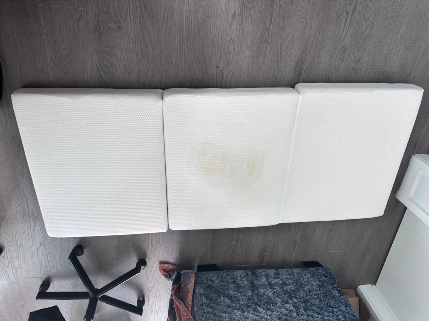 Selling a 3-panel foldable mattress. It’s firm, supportive, and great for guests, small spaces, or temporary setups. Folds down compactly and is easy to move.