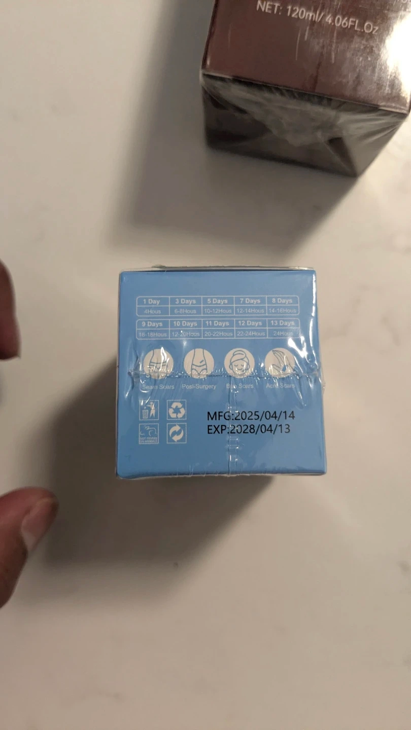 I'm selling silicone scar tape that improves and lightens scars. It's 4cm x 150cm (1.6in x 59in) and can be cut at will. The manufacturing date is 2025 April 14, and the expiration date is 2028 April 13. Perfect for post-surgery scars, aging scars, acne scars, and face scars!