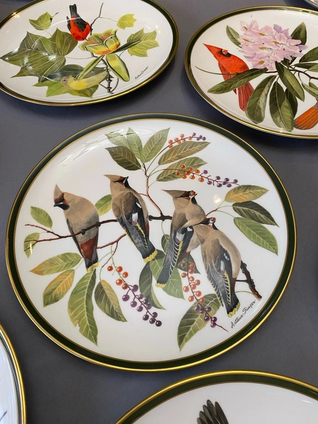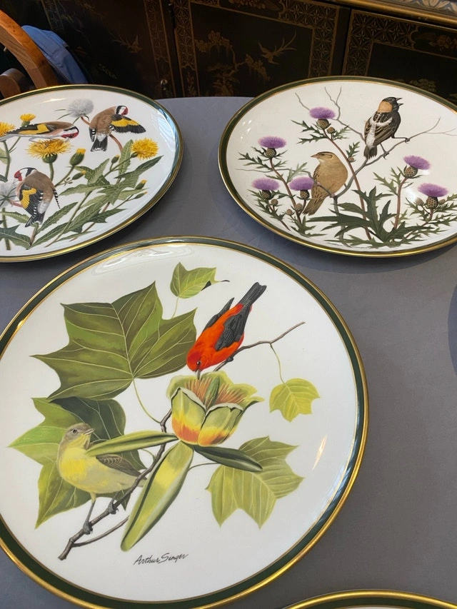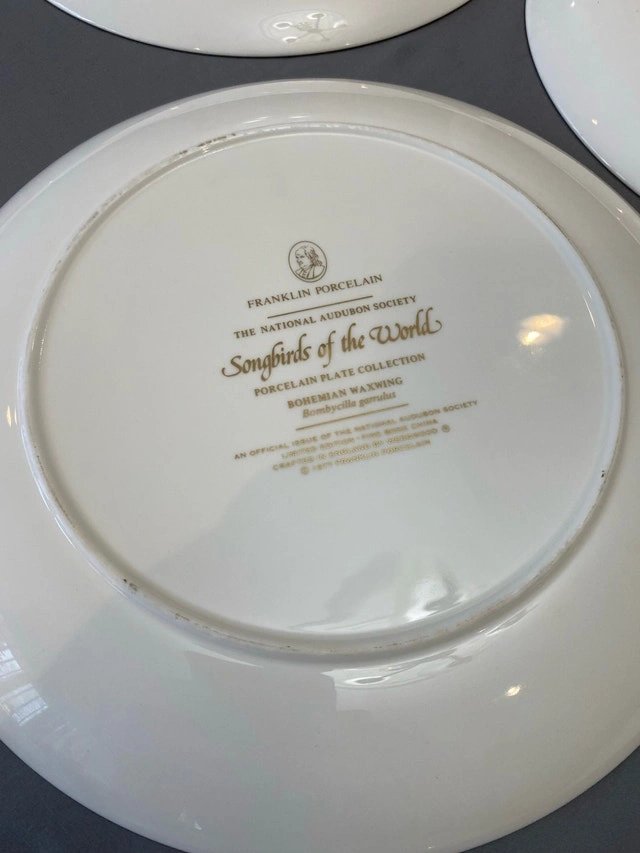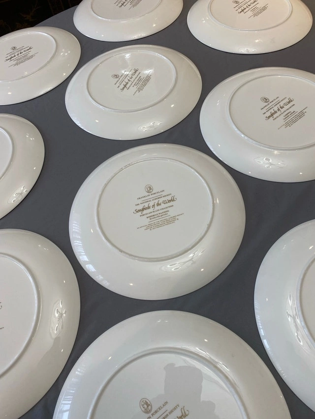 I'm offering a set of twelve limited edition Franklin Porcelain collector plates, each featuring a unique bird illustration from The National Audubon Society Songbirds of the World collection art by Arthur Singer. These decorative plates are in excellent condition and showcase beautiful artistry. A whimsical addition to any collection, ready to bring a touch of nature indoors!