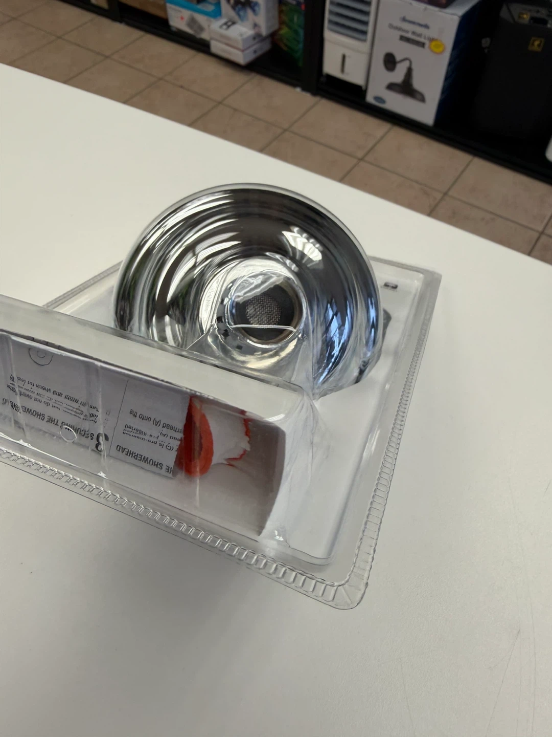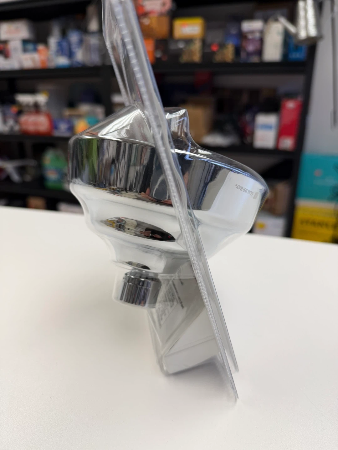 Selling a brand new Glacier Bay showerhead in chrome! It's still in its original packaging. This showerhead has 5 spray settings for a drenching coverage. It also features rub-clean nozzles and a limited lifetime warranty