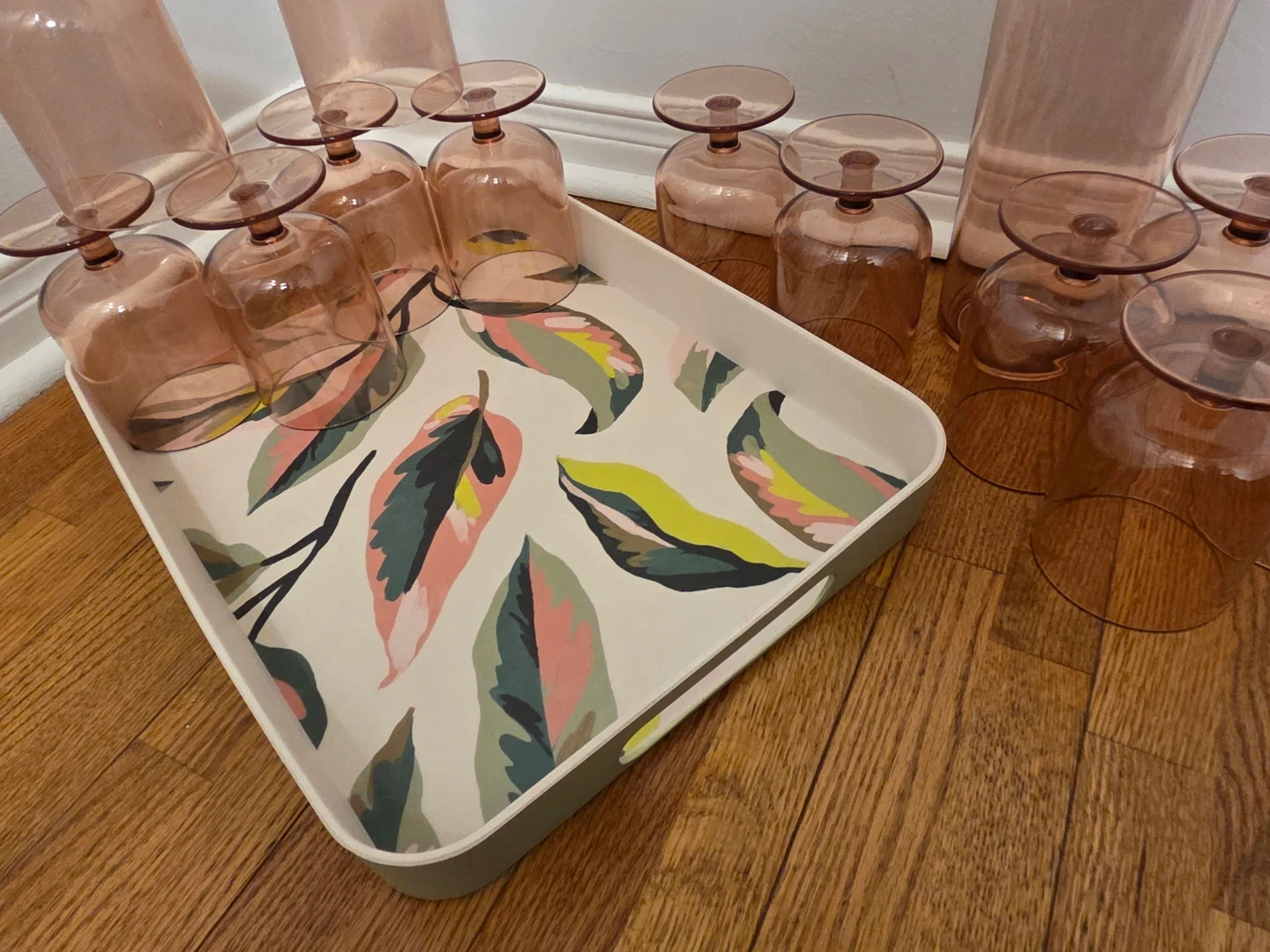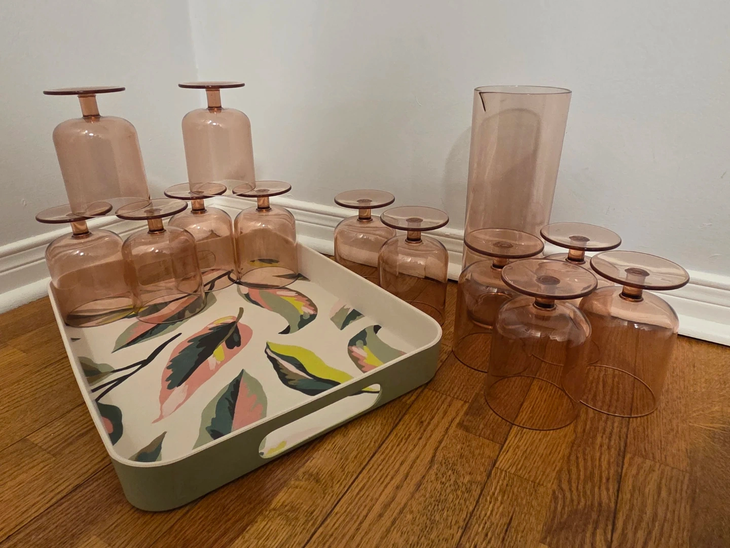 Pink Drinkware Set: Pitcher, Tray & 10 Glasses