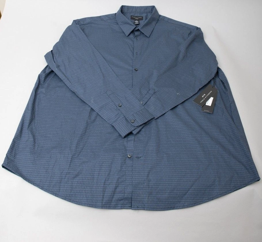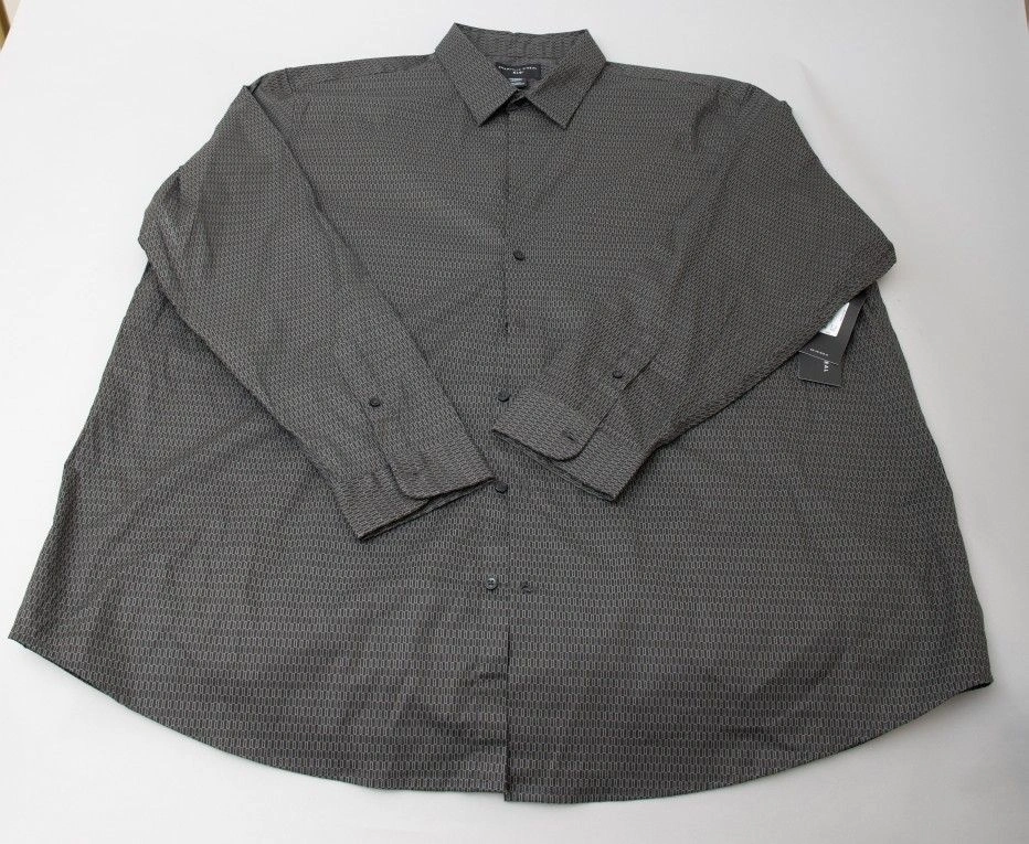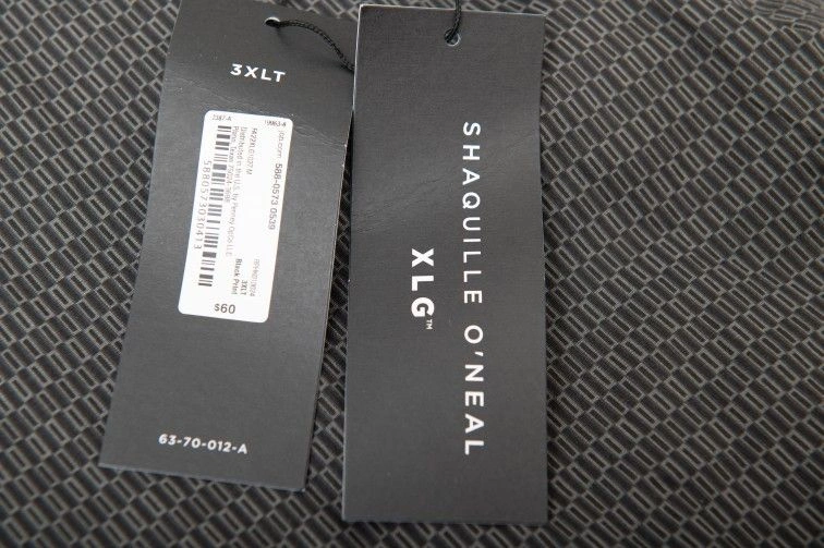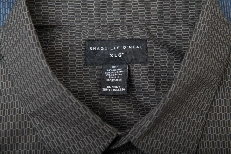 Elevate your wardrobe with these two Shaquille O'Neal banded collar dress shirts in size 3XLT. The long sleeve button-up shirts are perfect for any occasion and feature a stylish collared neckline. Made with 97% cotton and 3% spandex, the shirts are comfortable and machine washable for easy care. The garment care is simple, and the shirts are perfect for men who are looking for a basic yet stylish addition to their wardrobe. The shirts are designed for big and tall men and have a button closure. The collar style is a band, and the shirt is perfect for casual occasions. The shirts are made in Bangladesh, and the brand is Shaquille O'Neal. Size: 3XL