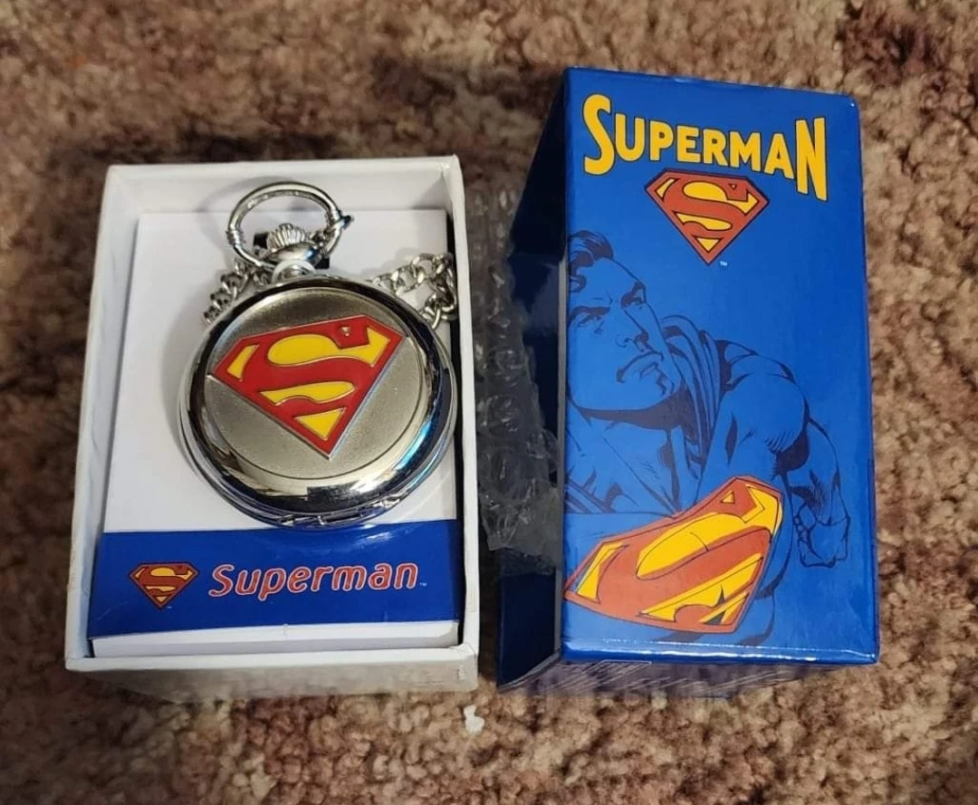 Selling a Superman pocket watch! It comes with the original box. The watch features the classic Superman logo on the front. A great piece for any Superman fan!
