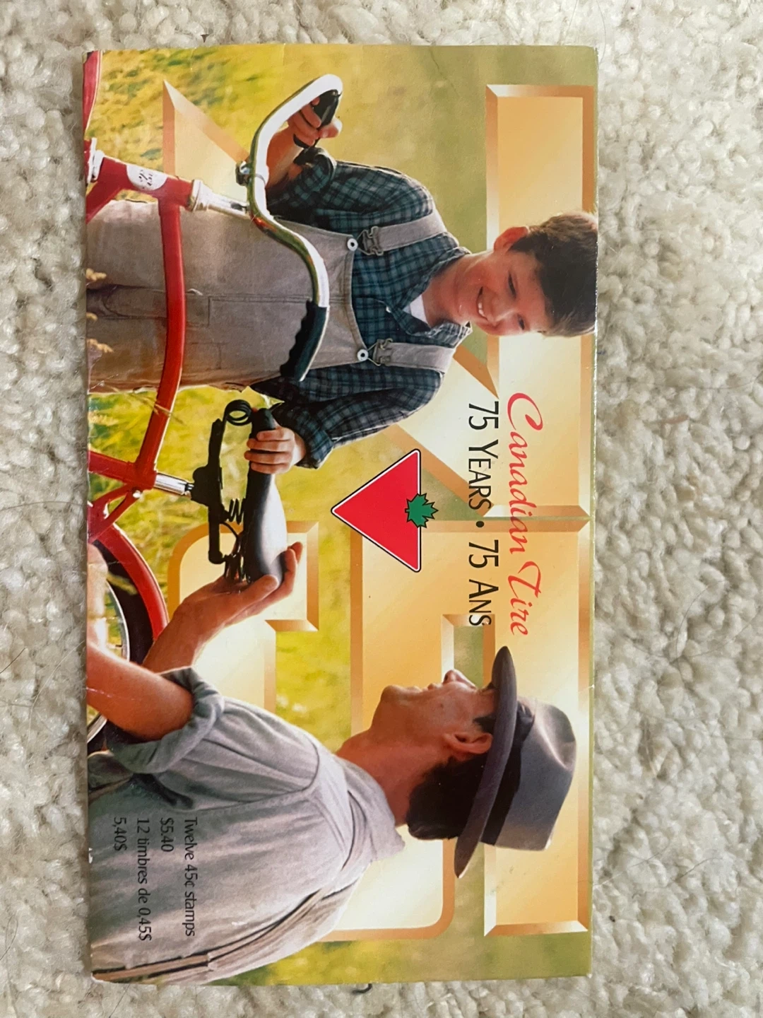 Selling a set of Canadian Tire 75 Years stamps! The set includes twelve .45 stamps. Asking $12. Pick up in Chappelle.