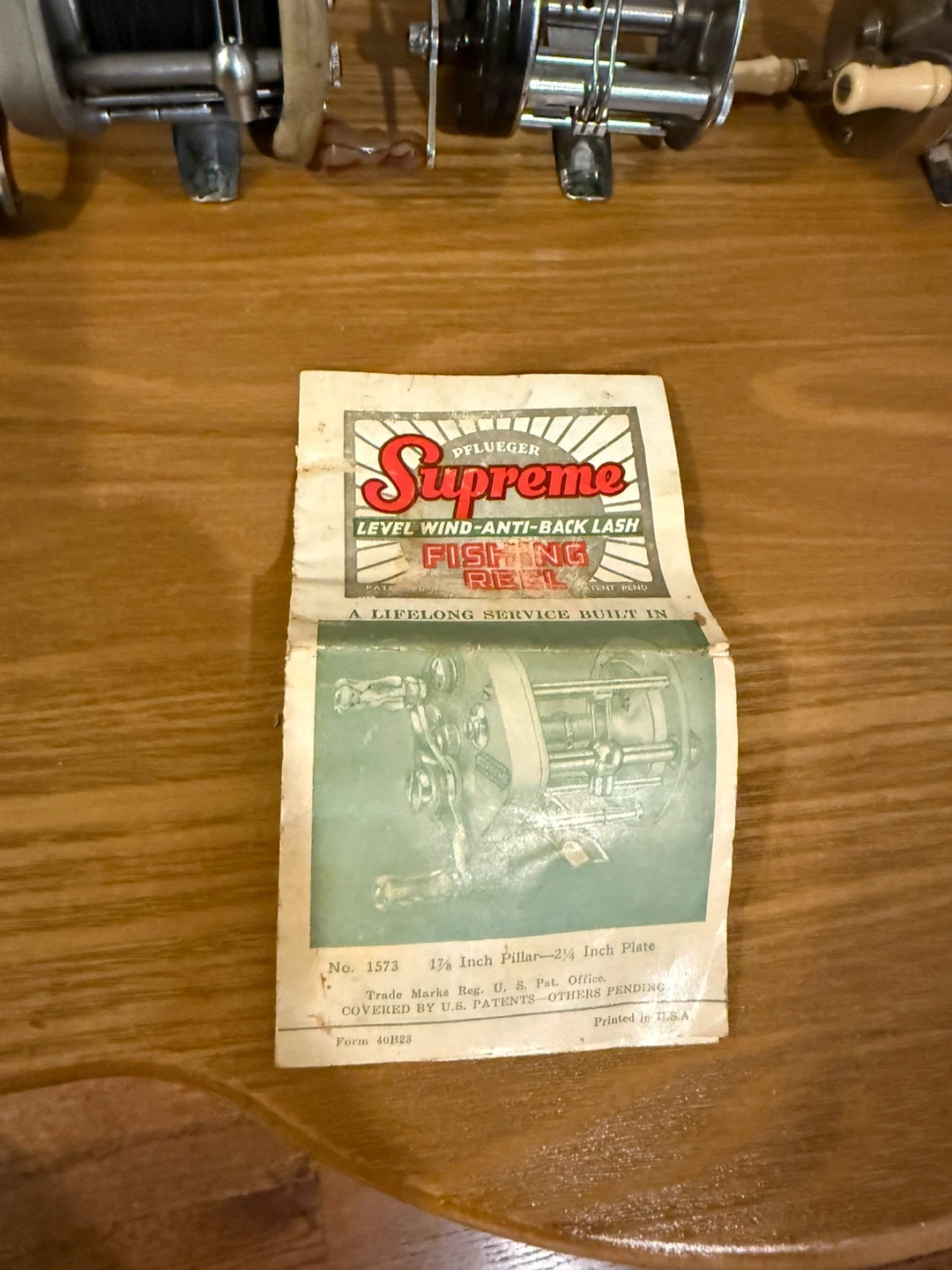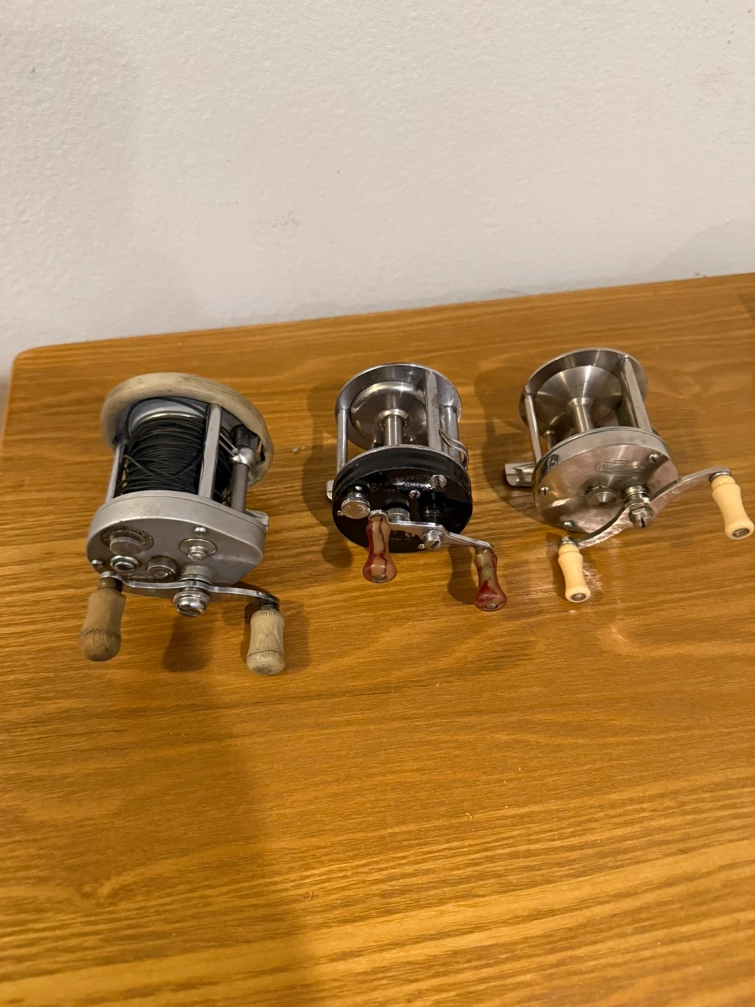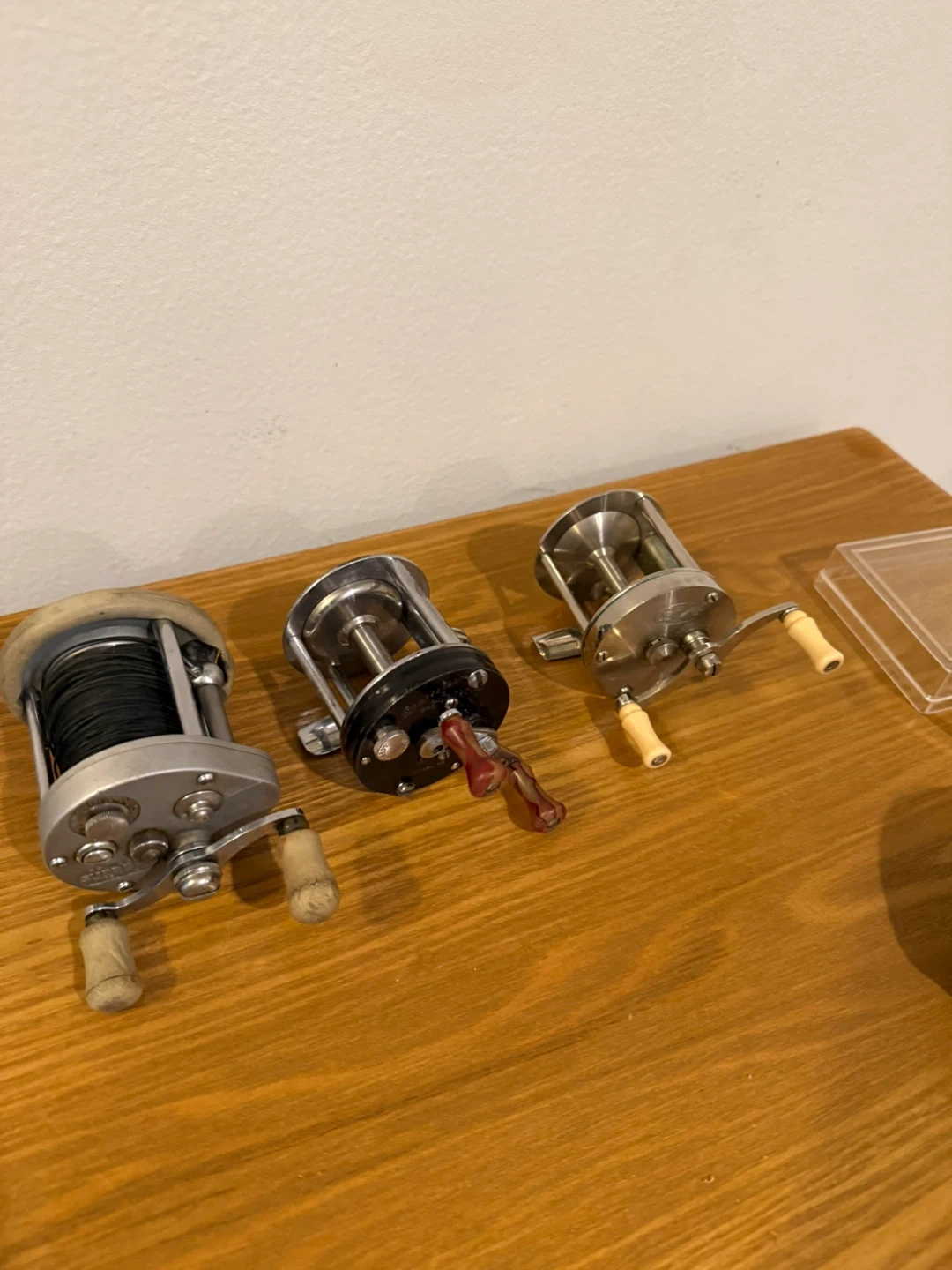 Selling a set of vintage fishing reels. Includes a Pflueger Supreme reel and two Shakespeare reels, one of which is a Criterion model. Great for collectors or fishing enthusiasts!