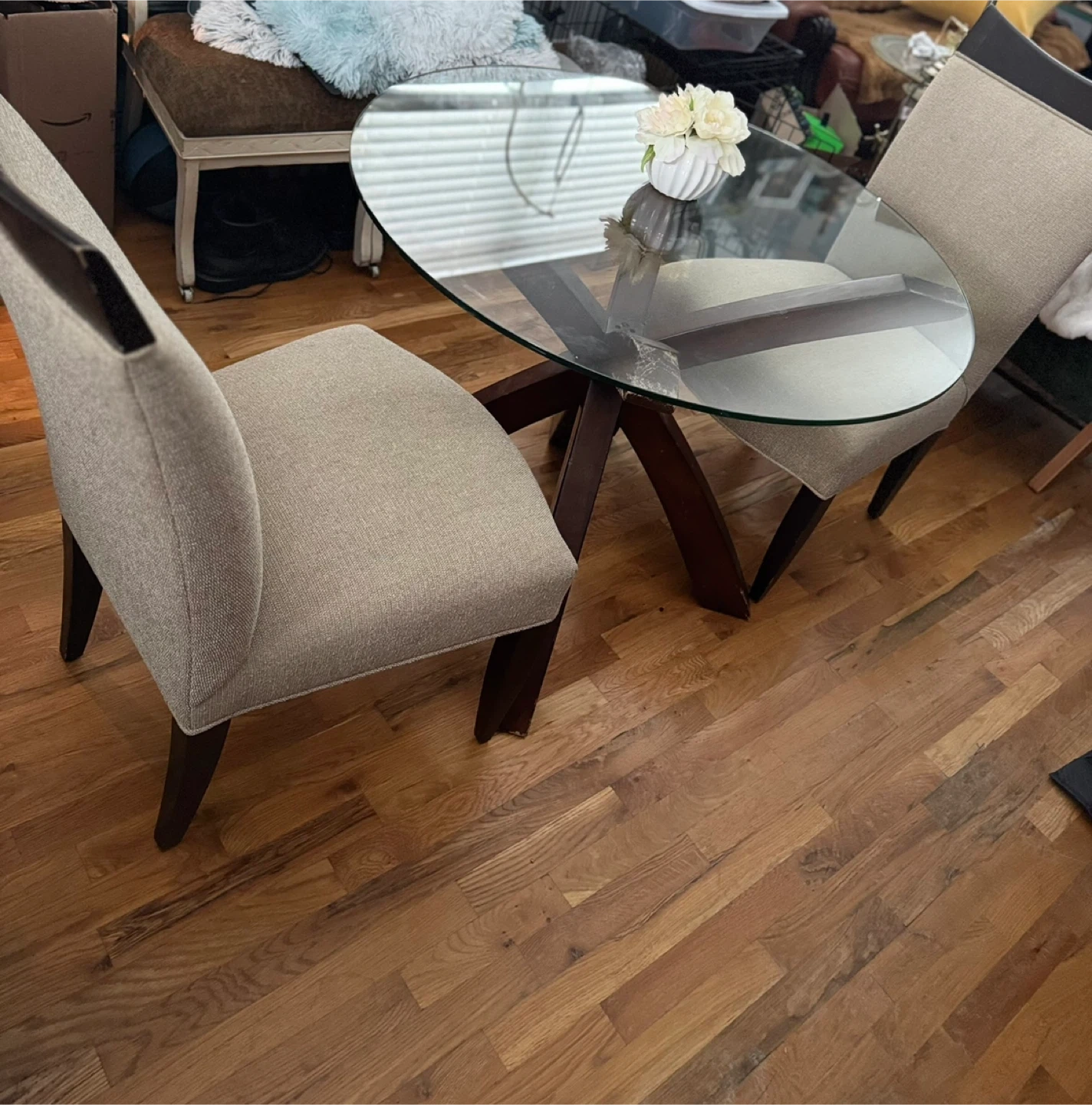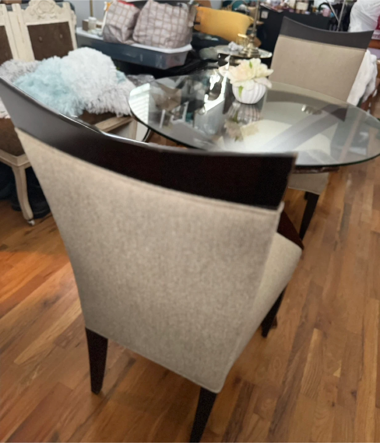 Selling a Donghia chair designed by Tony Hutton. It's a stylish and comfortable chair that would be a great addition to any dining or living space! The neutral color and elegant design make it a versatile piece of furniture