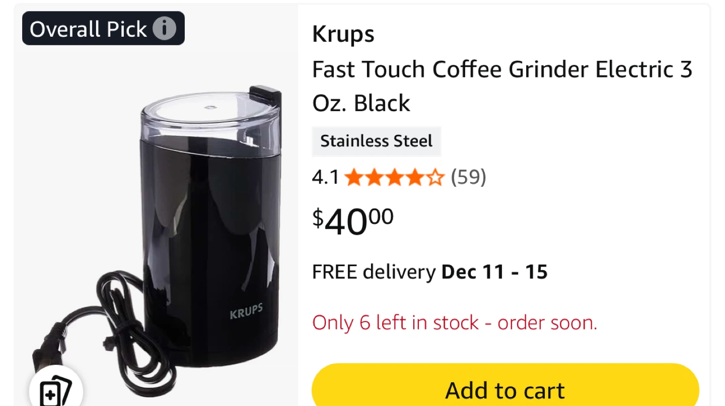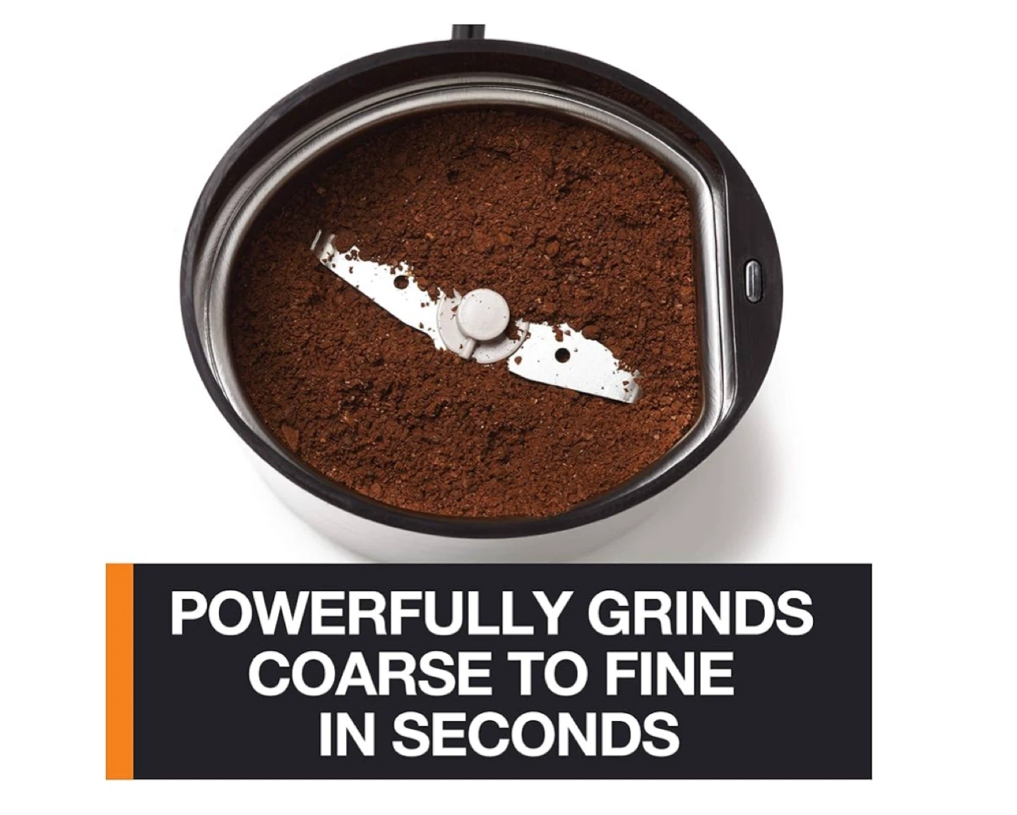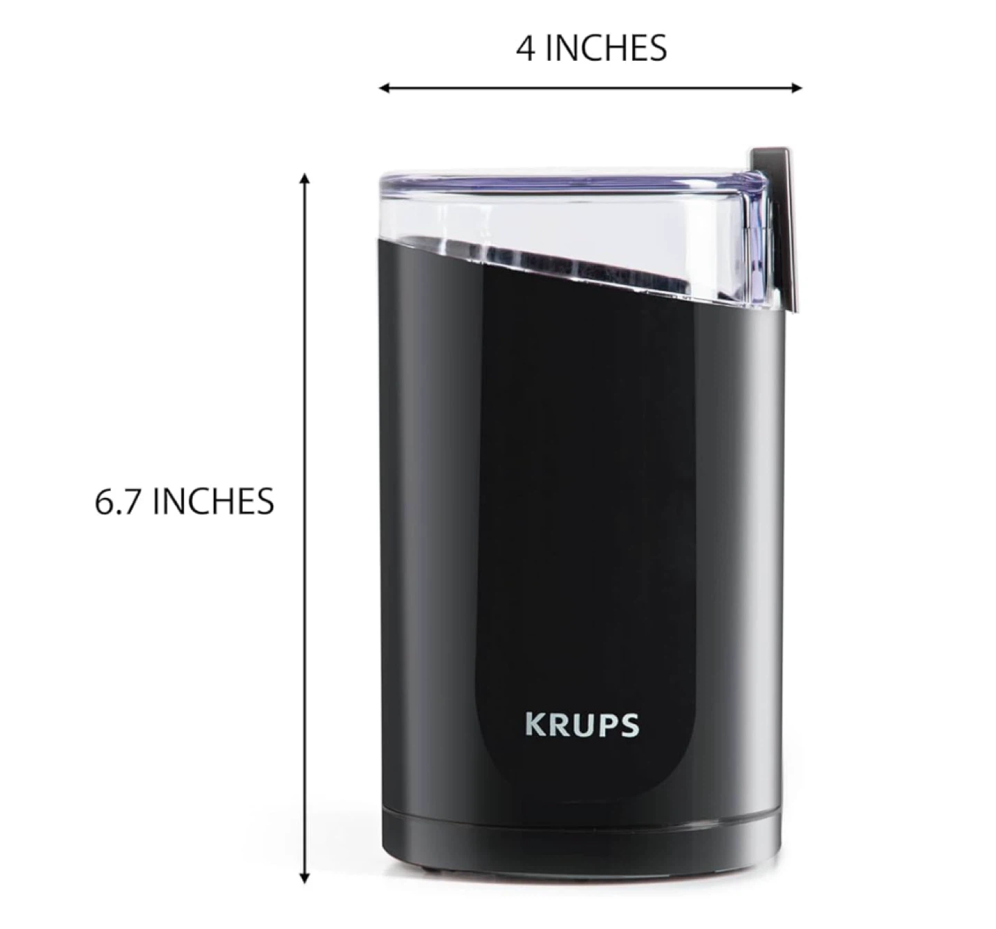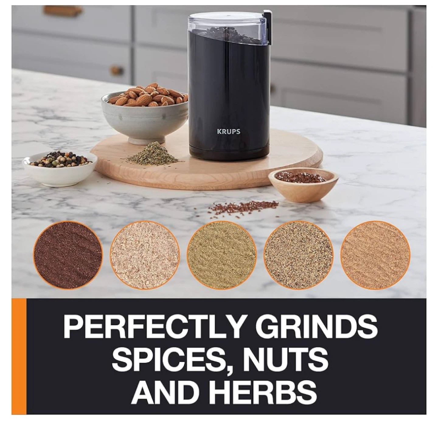I'm selling a Krups Fast Touch Coffee Grinder in black. It has a large capacity that holds 3 oz of beans. This grinder powerfully grinds from coarse to fine in seconds and has an easy one-touch operation. It also perfectly grinds spices, nuts, and herbs. It originally retailed for $40