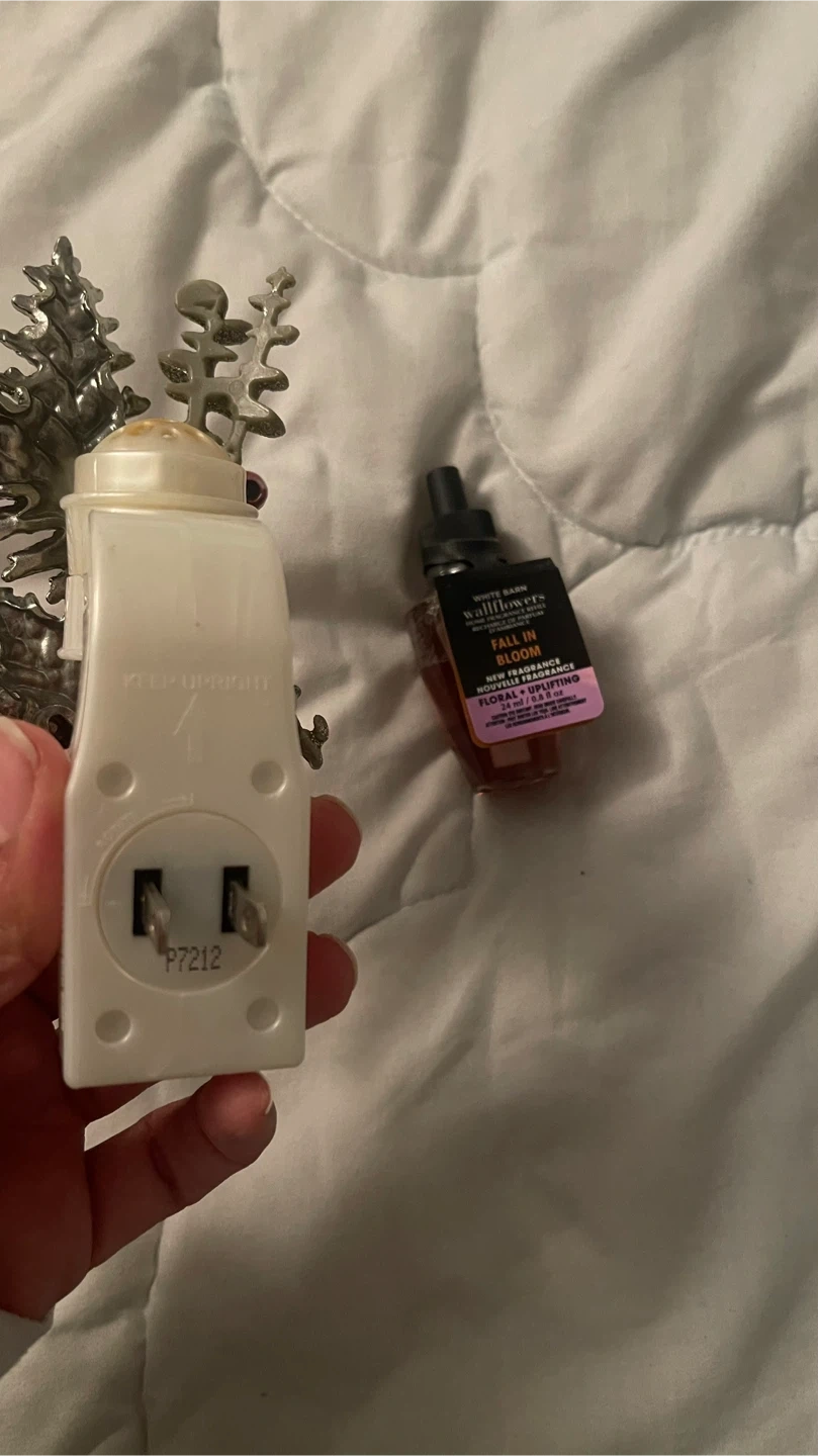 Selling a Bath & Body Works Wallflowers plug with a Fall in Bloom refill. The refill is a floral and fruity scent with notes of crisp apple, wild berries, and sugared plum. Perfect for adding a cozy autumn fragrance to your home