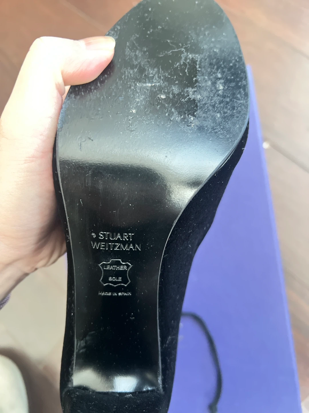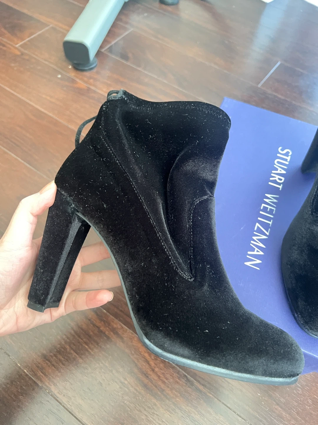 Selling a pair of Stuart Weitzman black velvet booties. They're in good condition and ready for a new owner! The sole is leather and they are made in Spain