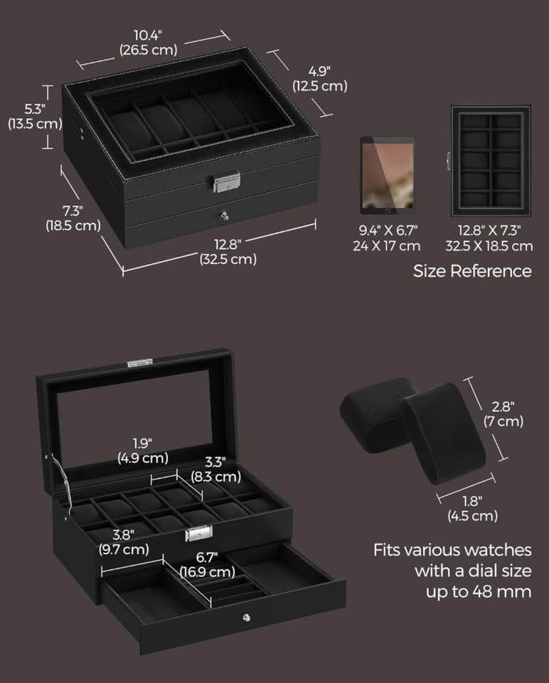 • 12 spacious slots for your watches