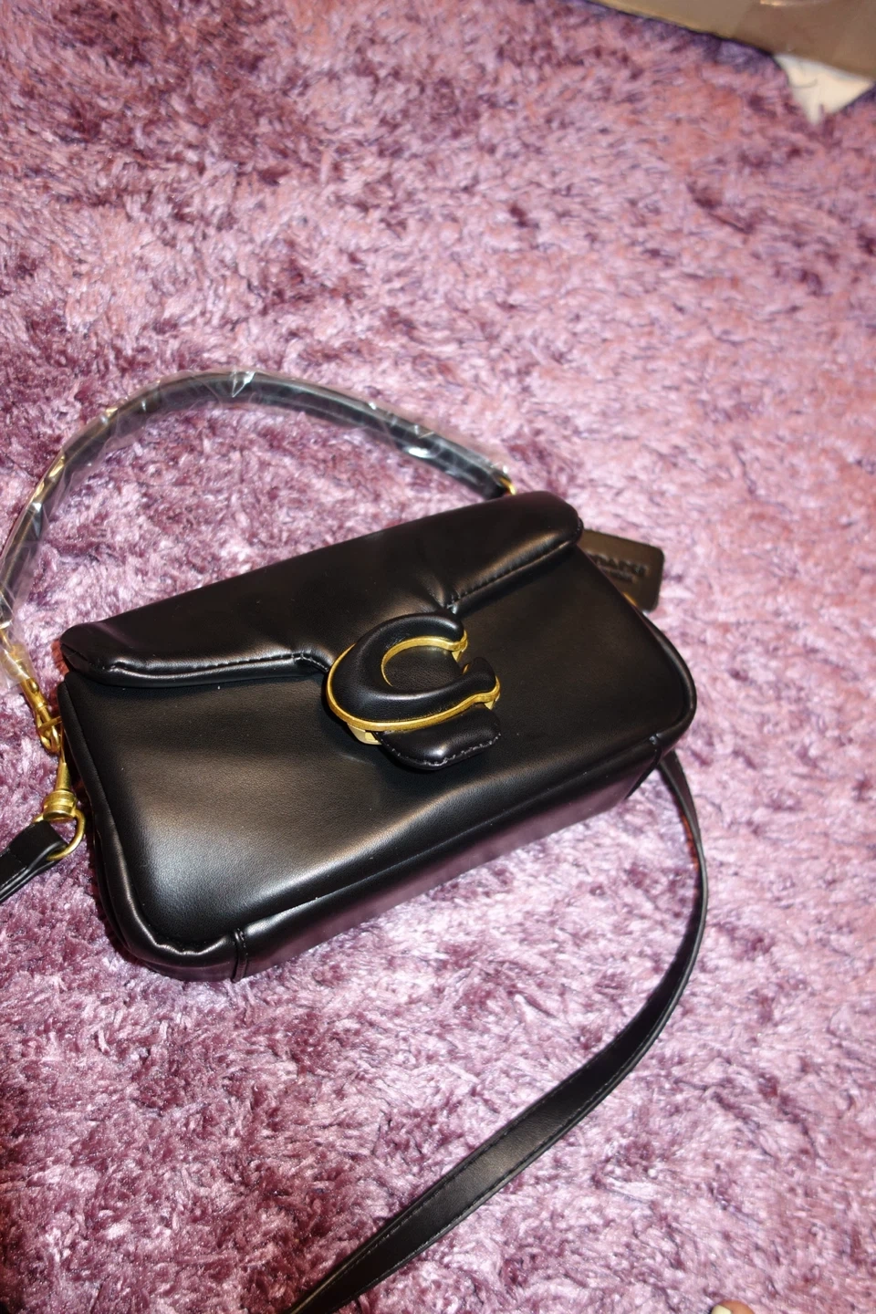 Selling a Coach Pillow Tabby 18 in black leather. It's in great condition and features the signature Coach 'C' hardware. Perfect for adding a touch of elegance to any outfit!