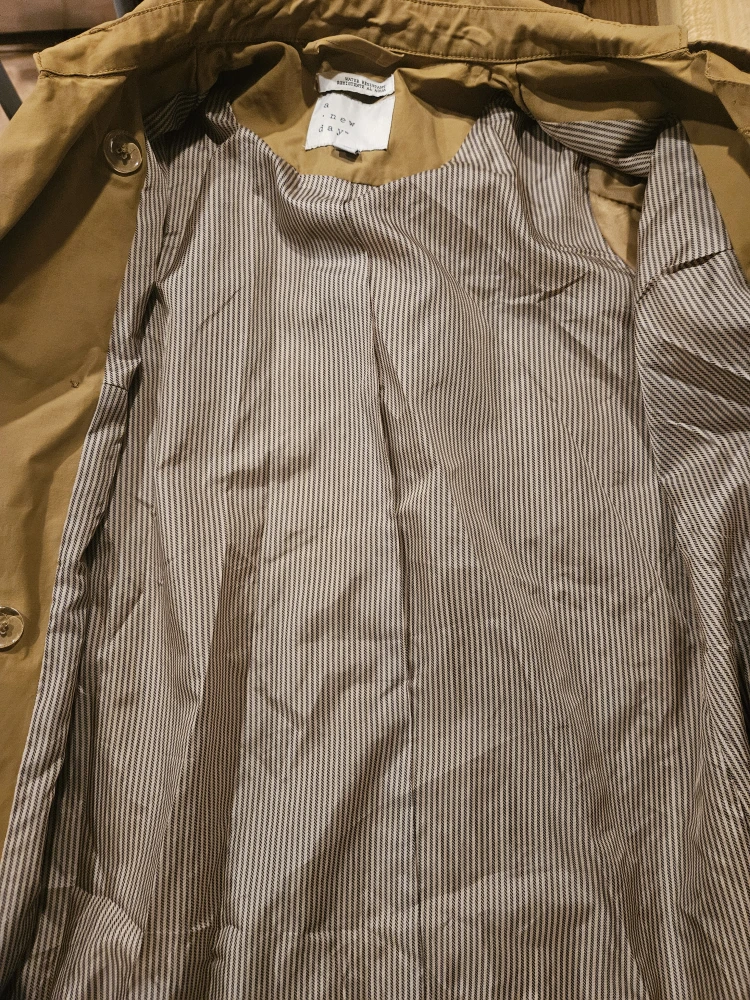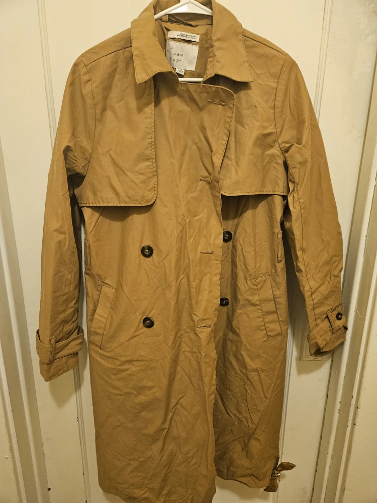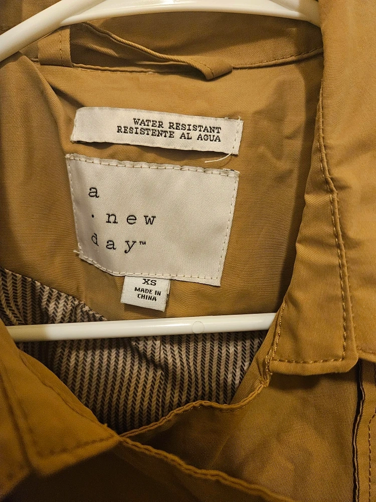 Selling a tan trench coat from A New Day in size XS. It's water resistant and has a stylish design. Perfect for layering!