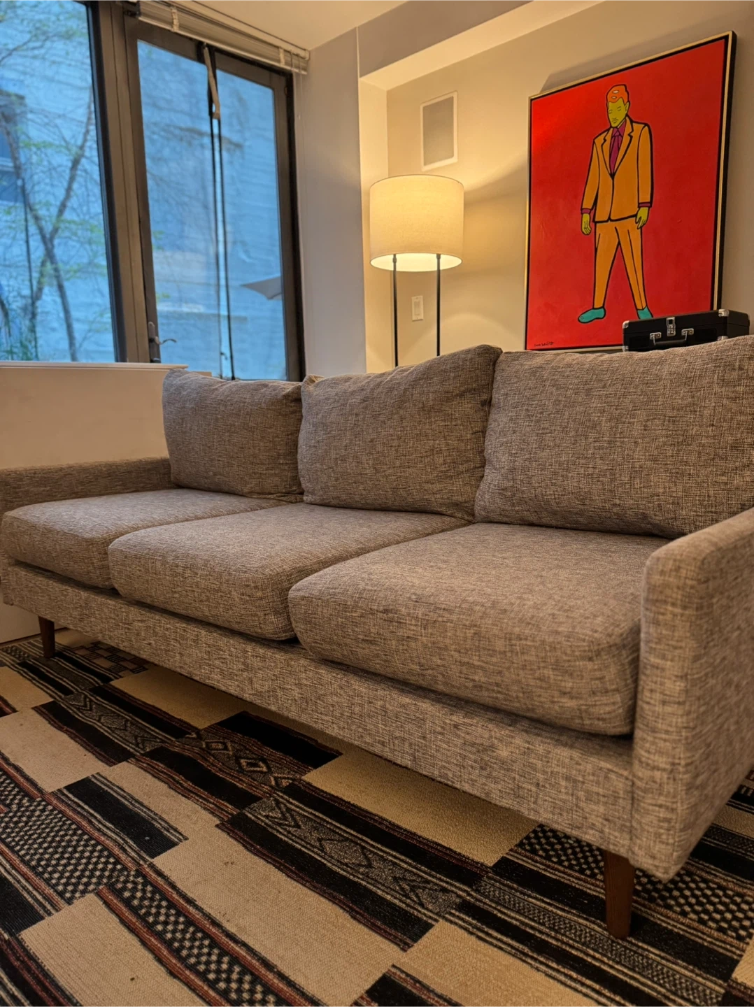 Selling a comfy, modern sofa in great condition! The sofa has a classic design with comfortable (and removable) cushions.