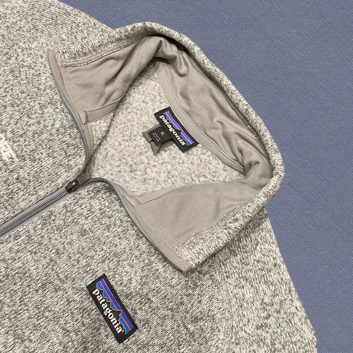 Grey Patagonia fleece 1/4 zip.