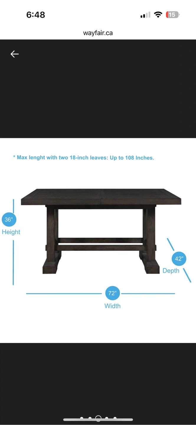 - Max length with two 18-inch leaves: Up to 108 Inches