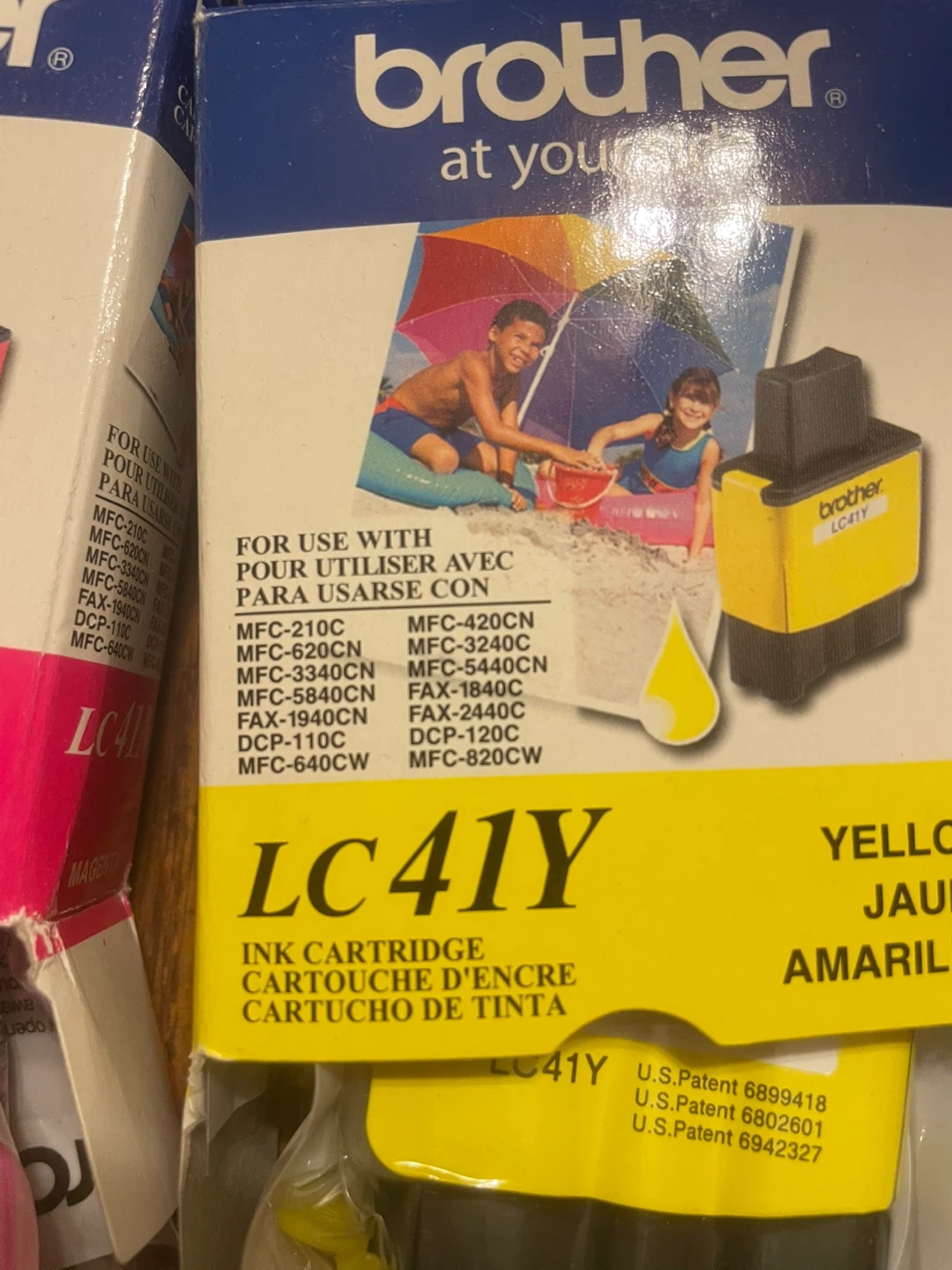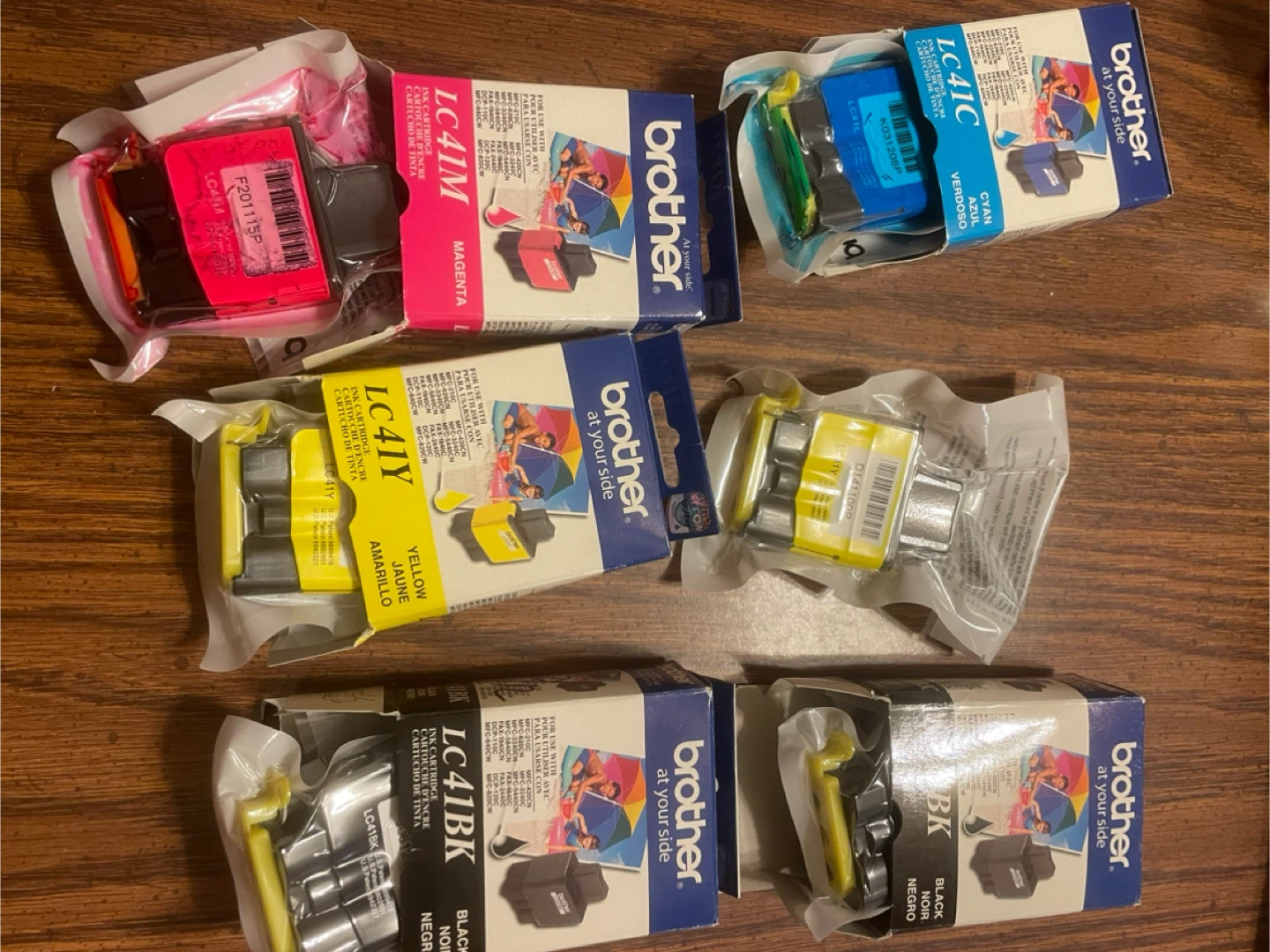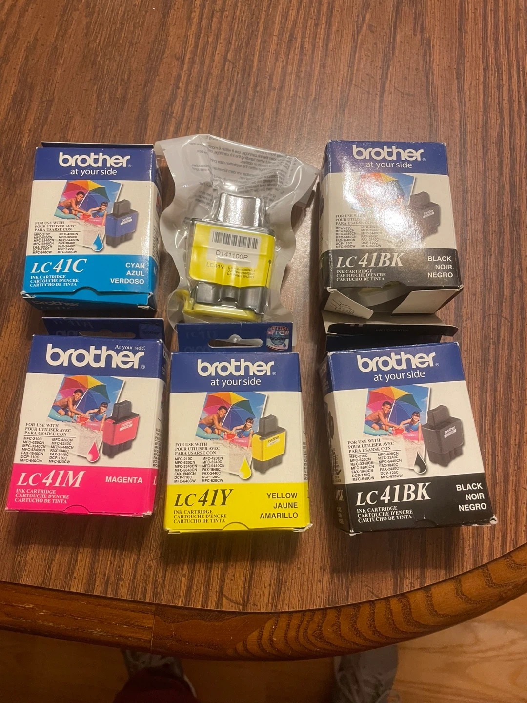 Selling a set of Brother LC41 ink cartridges! This set includes black, cyan, magenta, and yellow cartridges. They are new but purchased years ago. Ready to use with compatible Brother printers. Perfect for stocking up on ink!