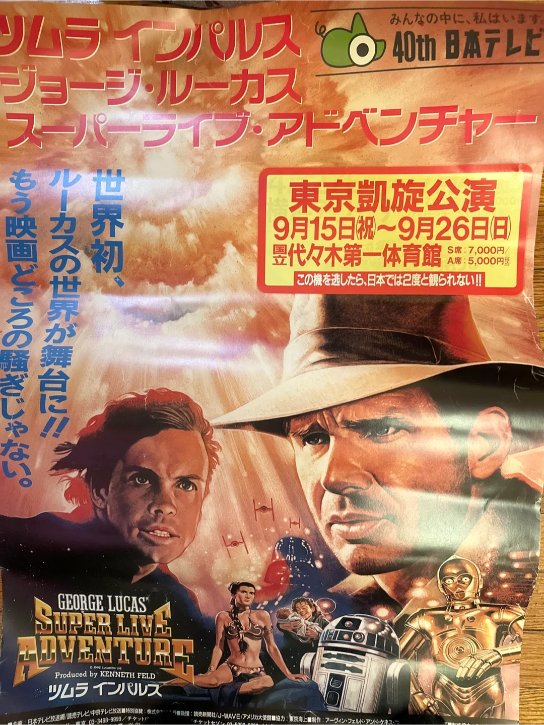 Selling a George Lucas Super Live Adventure poster. It features iconic characters and imagery from the Star Wars universe. The poster advertises the Tokyo performance from September 15th to 26th.